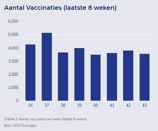 In de afgelopen week zijn er 3.556 vaccinaties gezet door GGD Groningen. “Van de Groningers heeft nu 82,7% een eerste prik gekregen en is 80,8% volledig gevaccineerd”, schrijft de GGD. Vorige week lag het aantal volledig gevaccineerden nog op 80,5%. Sinds het begin van de vaccinatiecampagne zijn er in de provincie Groningen 702.928 prikken gezet. Het gaat hier om zowel eerste, tweede als derde prikken.