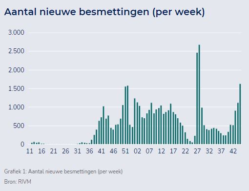 Sinds vorige week woensdag zijn er in de provincie 2.195 nieuwe besmettingen bijgekomen. “Dit is een forse stijging ten opzichte van de week hiervoor, toen het om 1.421 besmettingen ging. De besmettingsgraad ligt in onze regio op 375 gevallen per 100.000 inwoners, dit ligt nog ruim onder het landelijk gemiddelde van 633 per 100.000 inwoners. Het aantal ziekenhuisopnames is toegenomen naar 39,2 per 1.000.000 inwoners.” Sinds de start van de coronapandemie is er bij 56.197 personen een coronabesmetting vastgesteld.