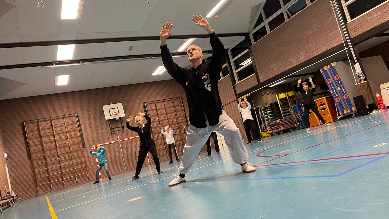 De klas van Welbergen is overwegend grijs, tot zijn teleurstelling. ‘Ik zou graag veel meer kinderen en jongeren tai chi geven.’