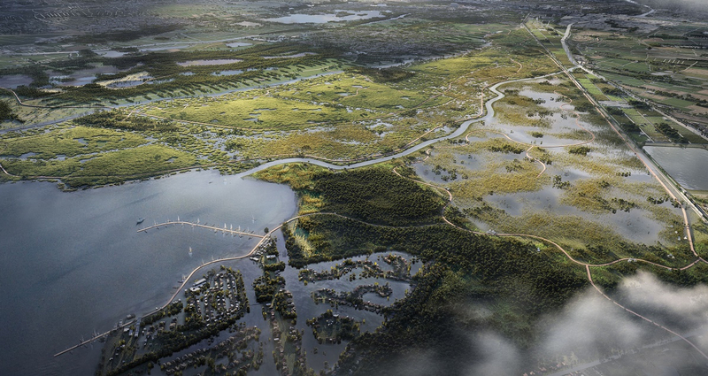 De tentoonstelling Sponsland is het hele komende weekend te zien, tijdens het festival Let’s Gro. In de tentoonstelling laten de ontwerpers oplossingen zien die de provincie kunnen voorbereiden op de klimaatverandering, de stijgende zeespiegel, hitte, wateroverlast, droogte en verzilting. De tentoonstelling is bedoeld om de regio aan te zetten om ons landschap aan te passen aan de klimaatverandering.