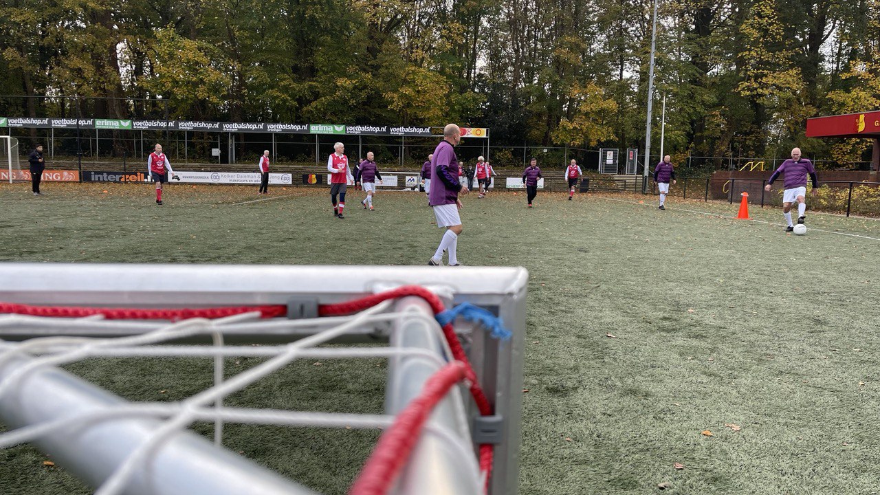 Al loopt het niet overal even soepel. De eerste twee partijtjes gaat het team van Job van Driel (64) hard onderuit. ‘We hebben nog geen doelpunt gemaakt,’ vertelt de speler van VEV’67 uit Leek. ‘Ik wil er eigenlijk nog wel eentje maken. Ik bedoel, ik heb vandaag vrij genomen. Normaal werk ik gewoon.’
