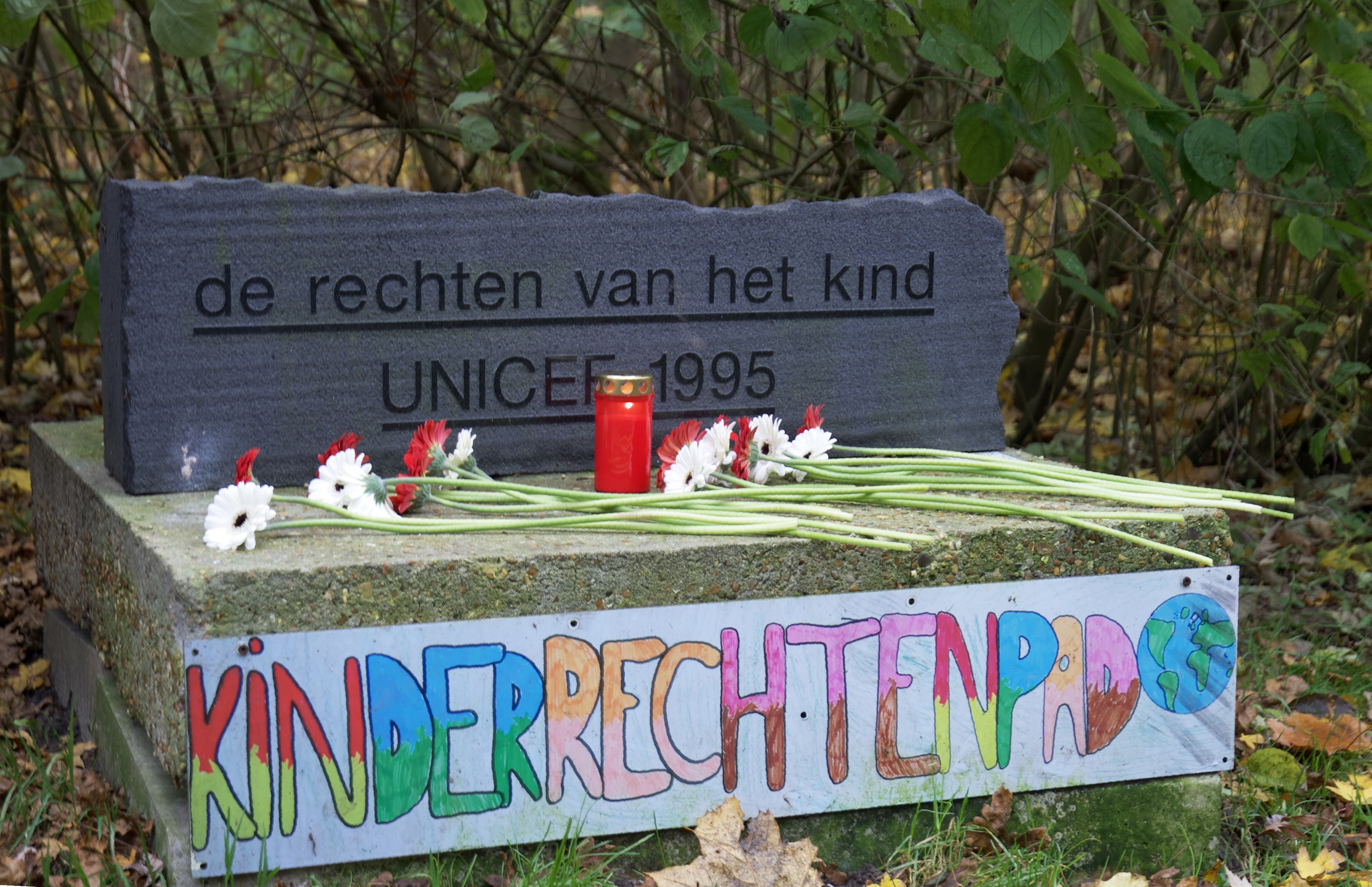 Op de internationale dag voor de Rechten van het Kind is zaterdagochtend in het Bevrijdingsbos een speciale vlag onthuld.