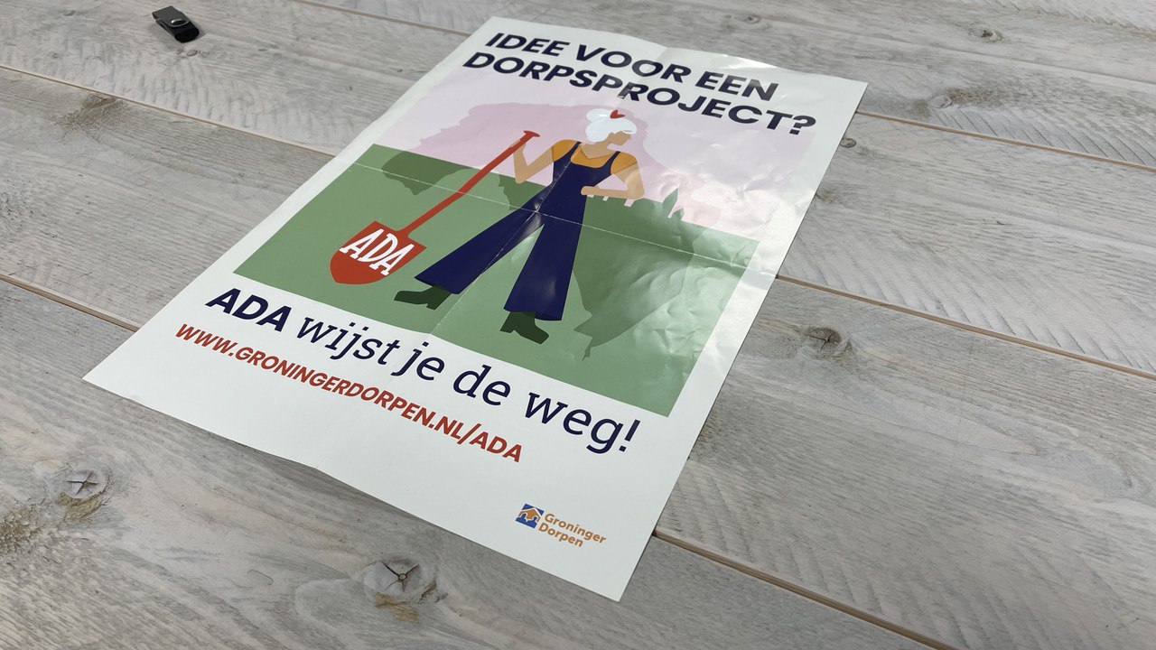 De poster die Groninger Dorpen de komende tijd in de Groningse dorpen gaat uitdelen (Foto: Bram Koster)