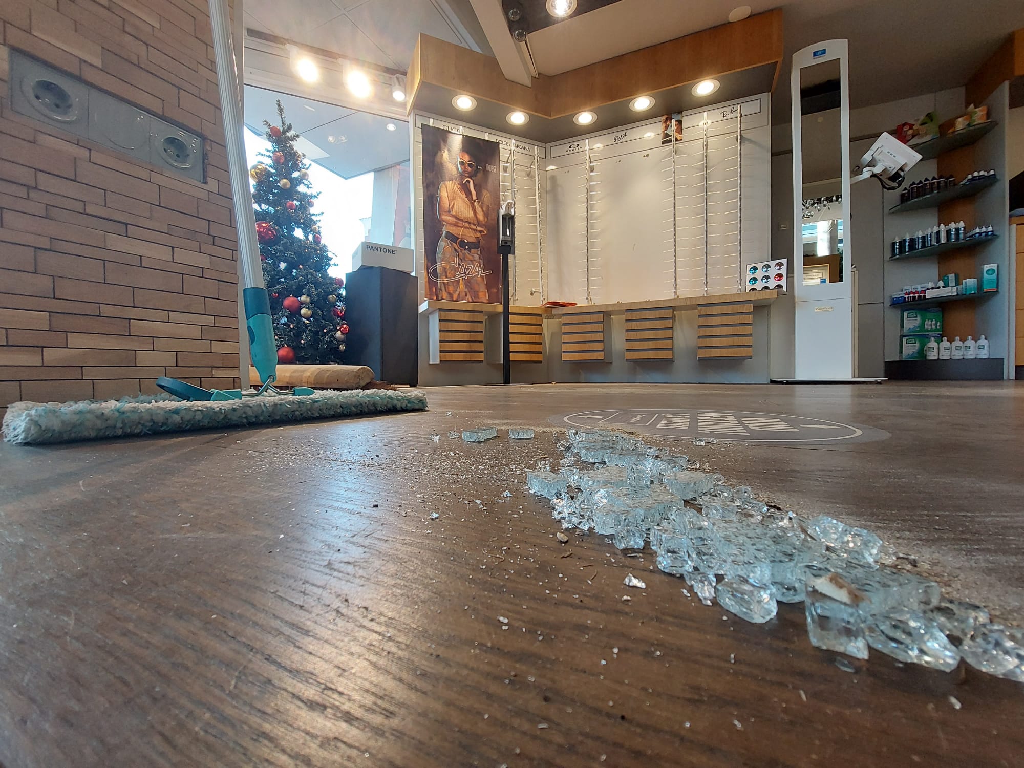 De actie de vooral in het oog sprong tijdens de rellen, waren de vernielingen en plunderingen die werden aangericht bij een opticien aan de Grote Markt. Personeelsleden waren maandag druk bezig met puin ruimen.