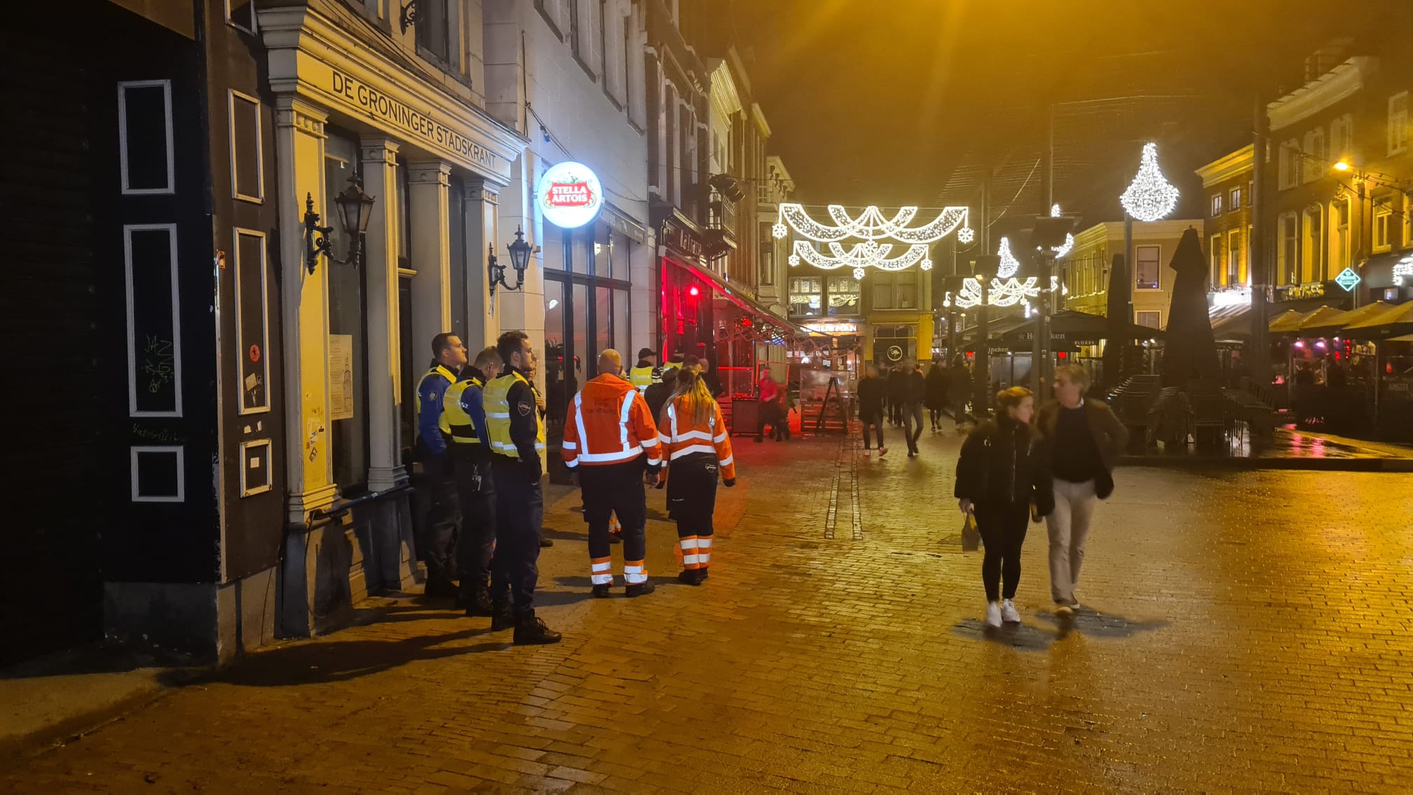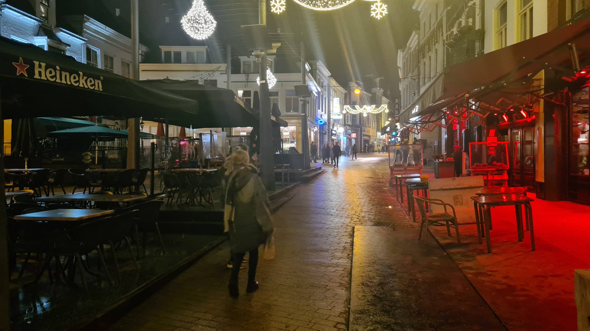 Rond 21.45 uur wordt er nog wel feest gevierd in een horecagelegenheid in de Gelkingestraat. “Er zijn nog mensen binnen”, ziet een fotograaf. “De politie is in de straat aanwezig, en staat hier met drie auto’s paraat. Ik sprak zojuist met een politieagente en volgens haar is dit het enige café dat nog open is in de stad.”