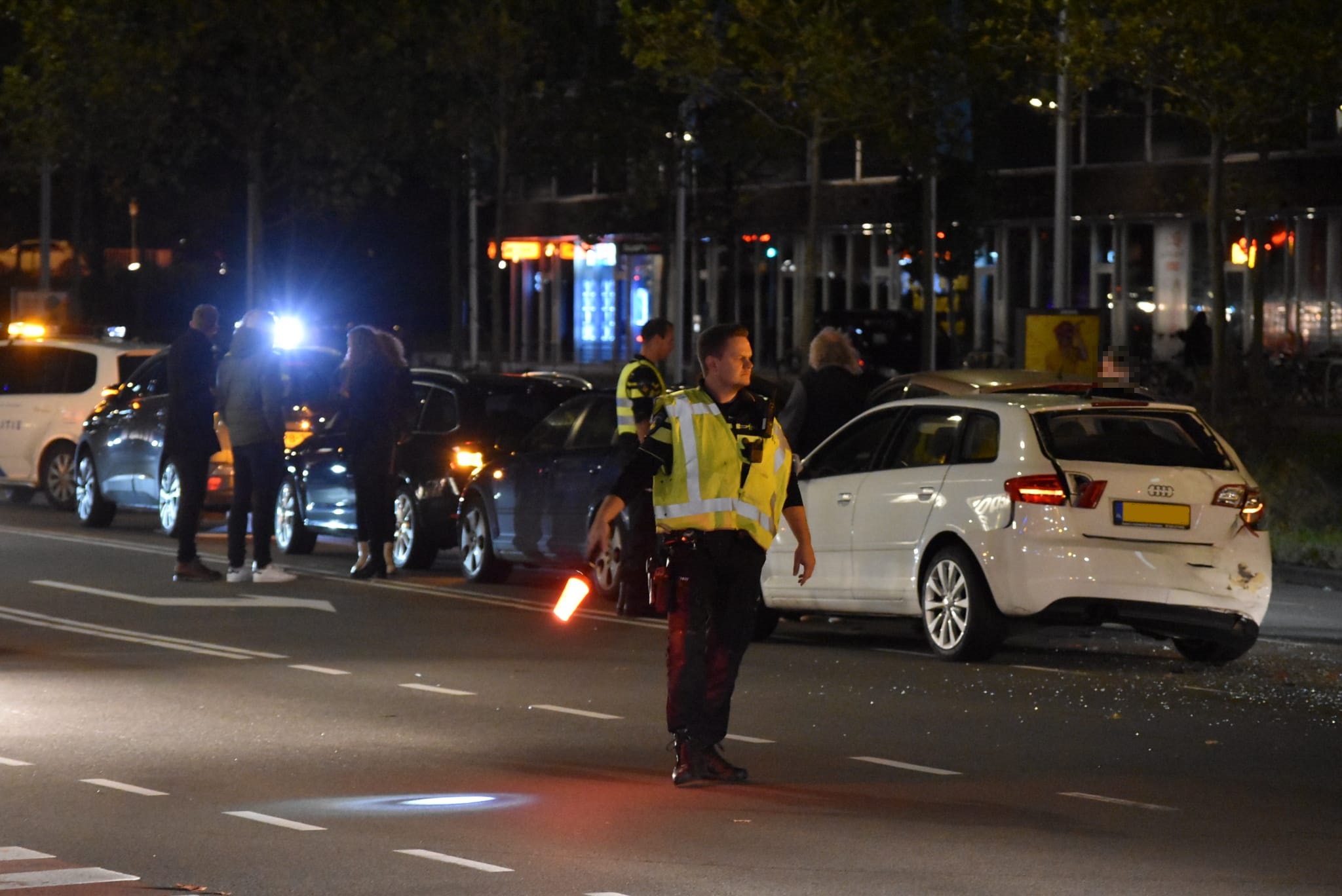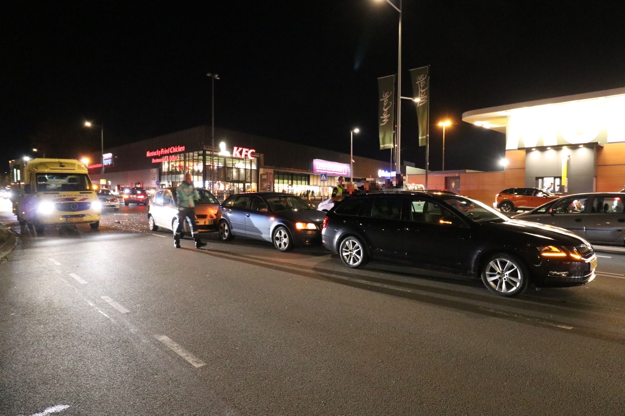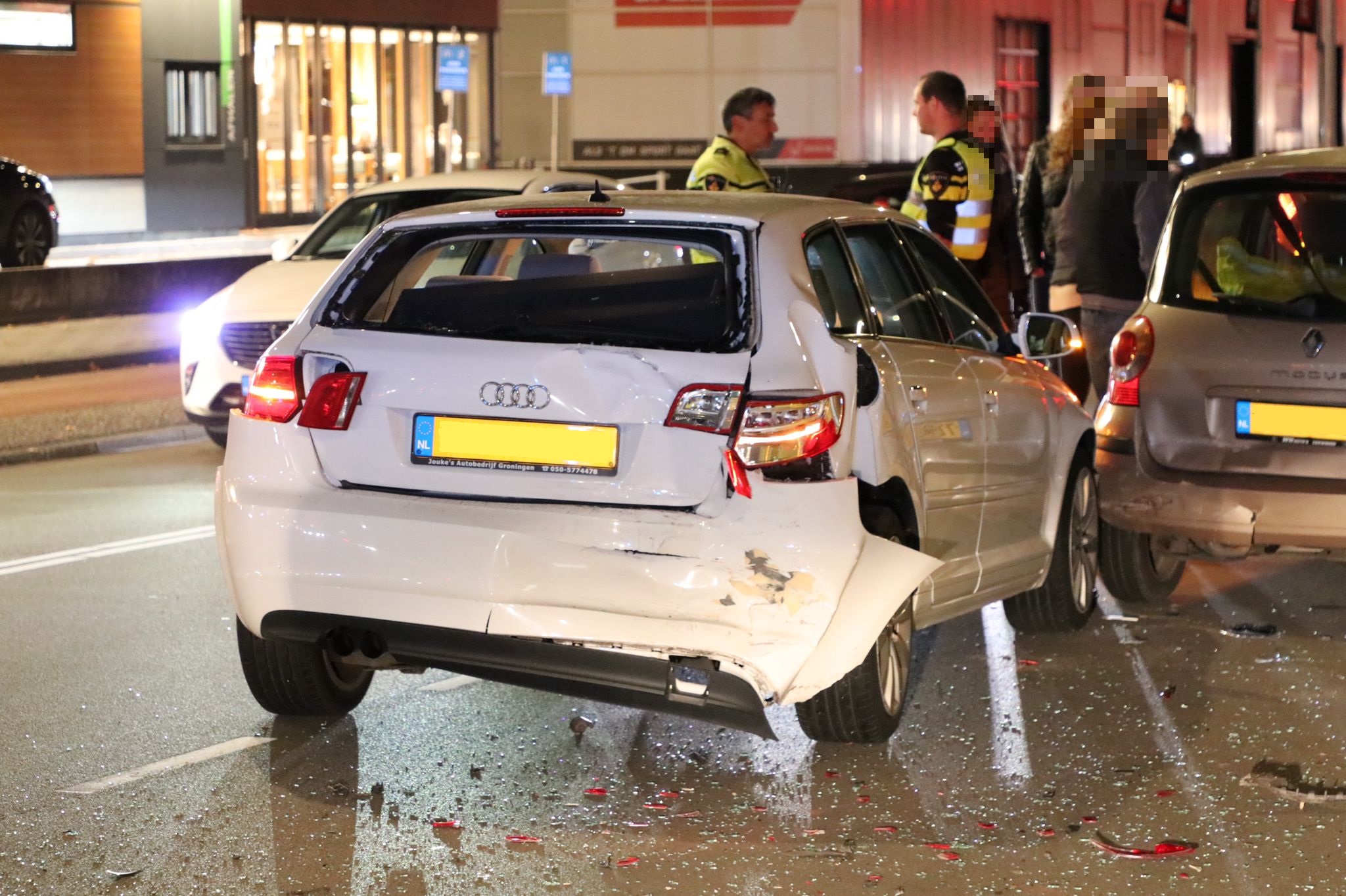 Het ongeluk gebeurde rond 18.00 uur op de rijbaan vanaf de brandweerkazerne richting de Griffeweg. “Ter hoogte van een fastfoodrestaurant reed een bestelbus, die vanuit de richting Bornholmstraat kwam, hard achterop een personenauto”, laat de politie weten. “Daardoor werden de vier auto’s daarvoor ook beschadigd. De bestuurder van de bestelbus reed daarna door en sloeg rechtsaf richting het UMCG.” Volgens de politie gaat het om een zwarte bestelbus met een imperial met daarop een ladder.