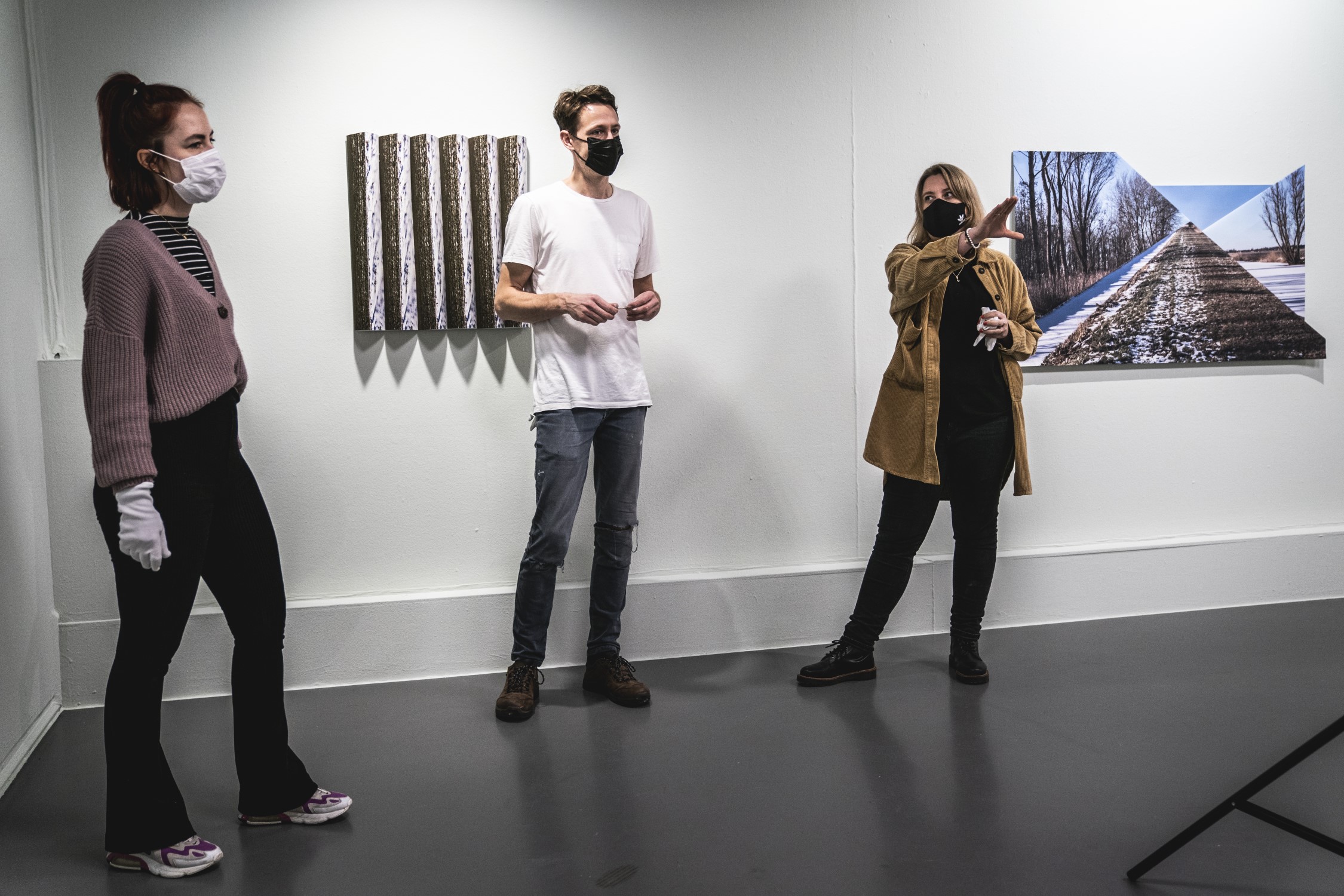 De zeven genomineerden voor het Hendrik de Vriesstipendium krijgen hulp van curator Margriet van Weenen om hun expositie in Kunstpunt in de Oosterpoort in te richten.