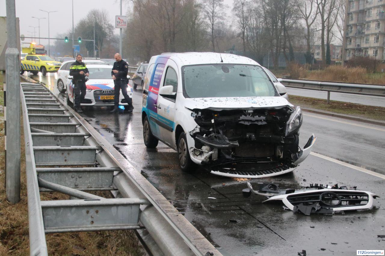Twee auto's zijn donderdagavond op elkaar geknald op de N370 tussen oprit Peizerweg en het…