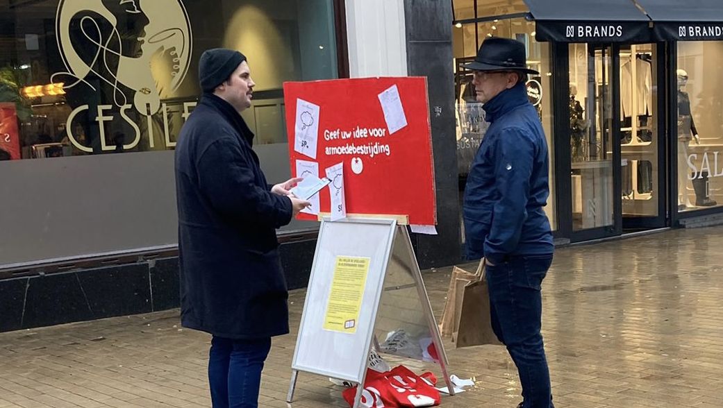 Leden van de Groningse SP-fractie staan de komende weken bij verschillende winkelcentra in de gemeente om Groningers te vragen naar hun beste ideeën om armoede te bestrijden. Dinsdagmiddag begon de ideeëninzameling in de binnenstad.