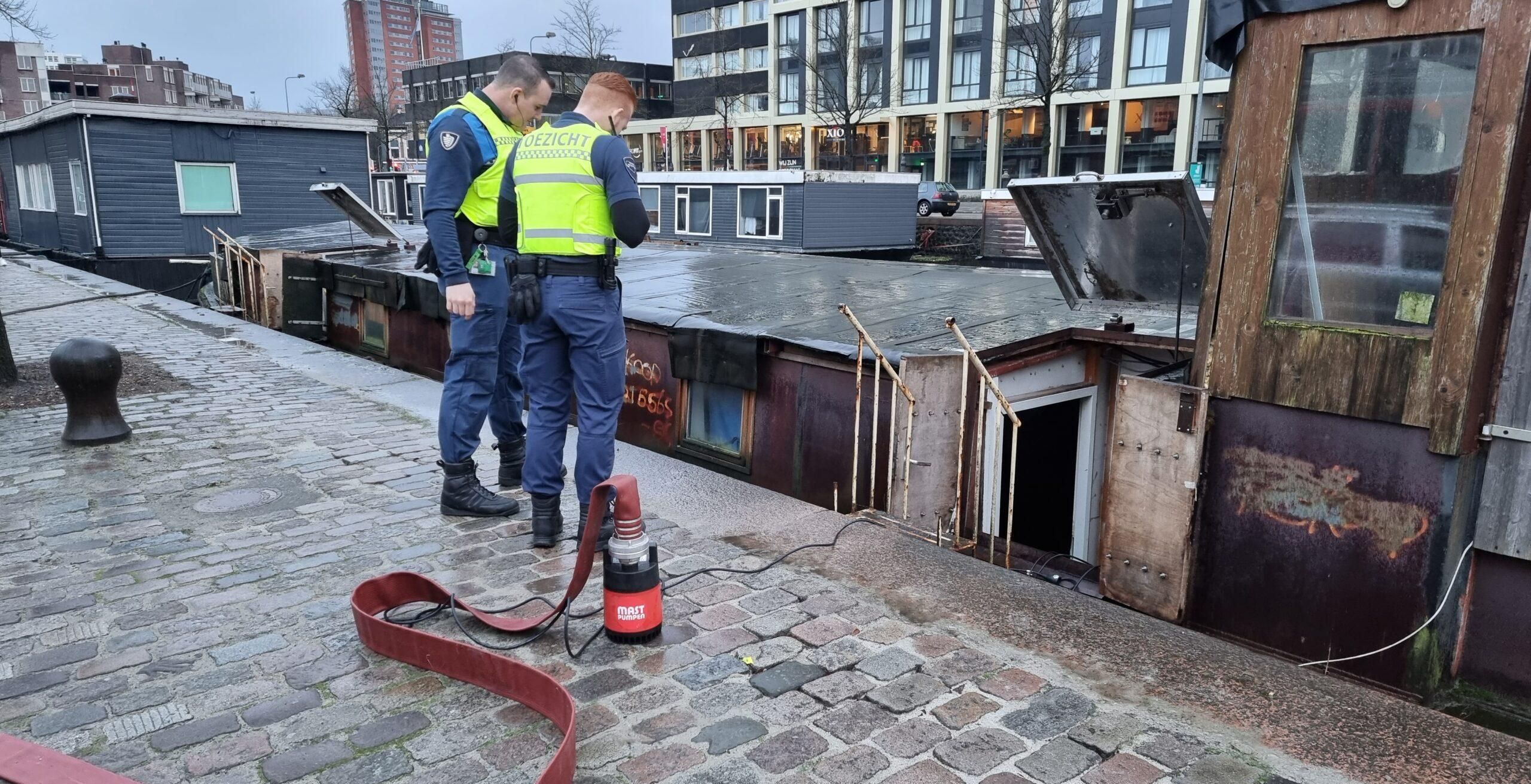 De brandweer heeft dinsdagmiddag een woonboot leeg moeten pompen aan de Eendrachtskade, omdat het schip water maakte.