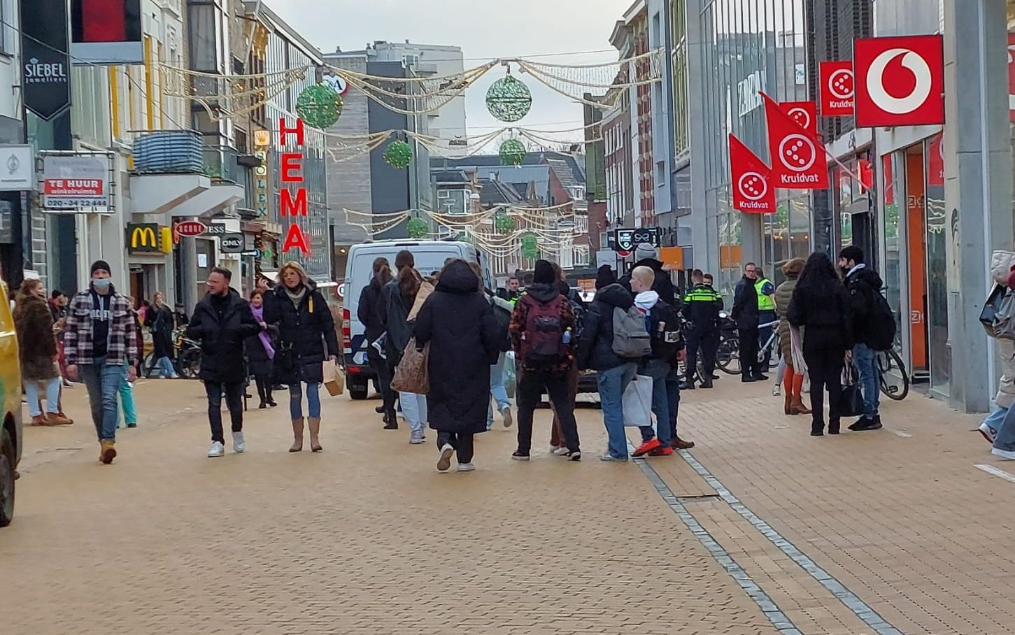 De arrestatie trok nogal wat bekijks in de winkelstraat. Zeker omdat de drie jongemannen in een arrestantenbus van de Dienst Justitie en Veiligheid richting het cellencomplex aan de Hooghoudtstraat gingen voor verhoor.