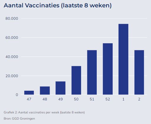 In de provincie Groningen heeft de GGD in de afgelopen week ruim 46.000 vaccinaties gezet. Dat blijkt uit de wekelijkse update van GGD Groningen.