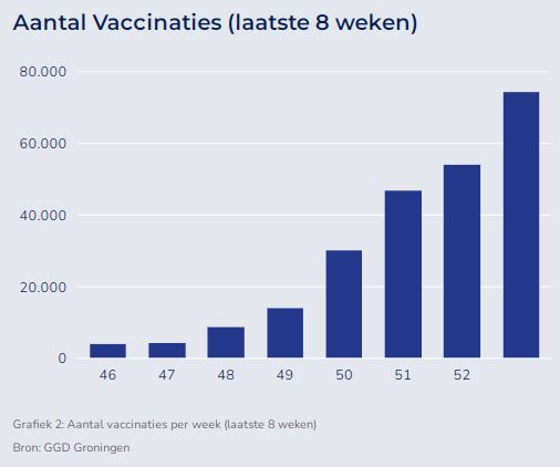 In de provincie Groningen zijn in de afgelopen week ruim 70.000 boosterprikken gezet. Dat laat de Groningse GGD weten in haar wekelijkse update.