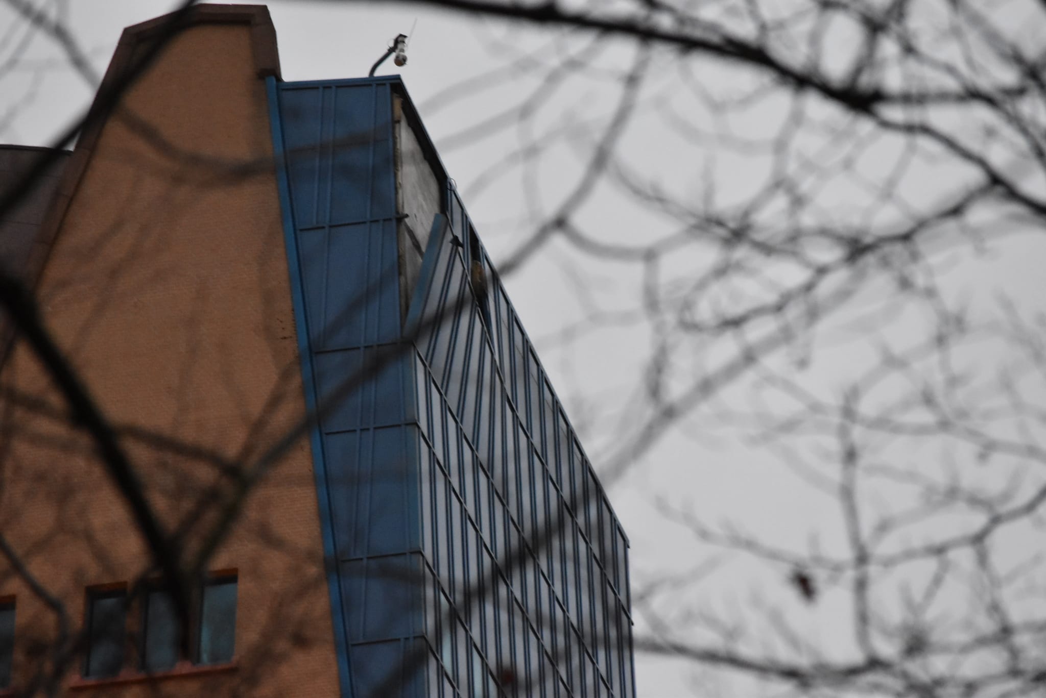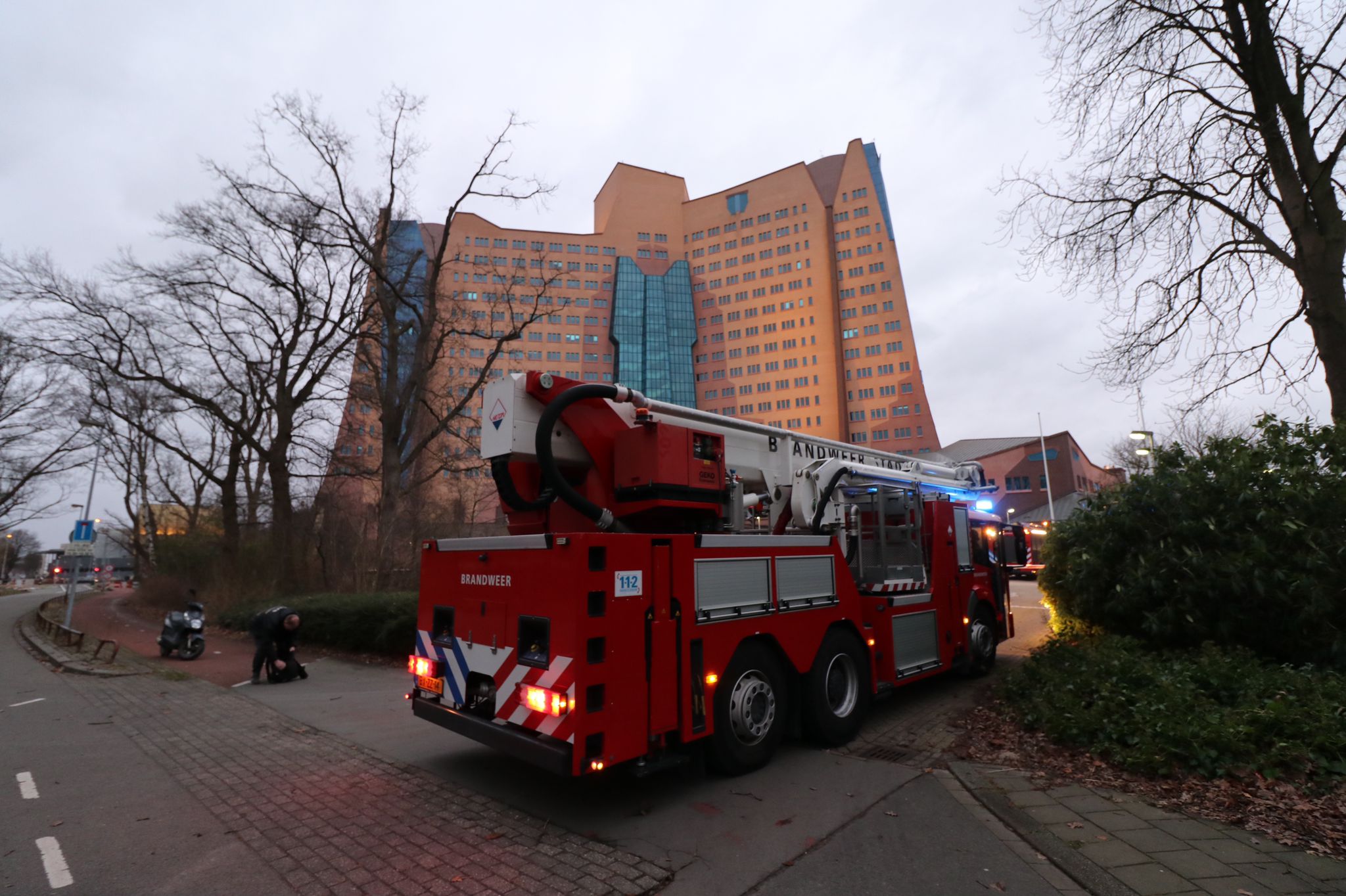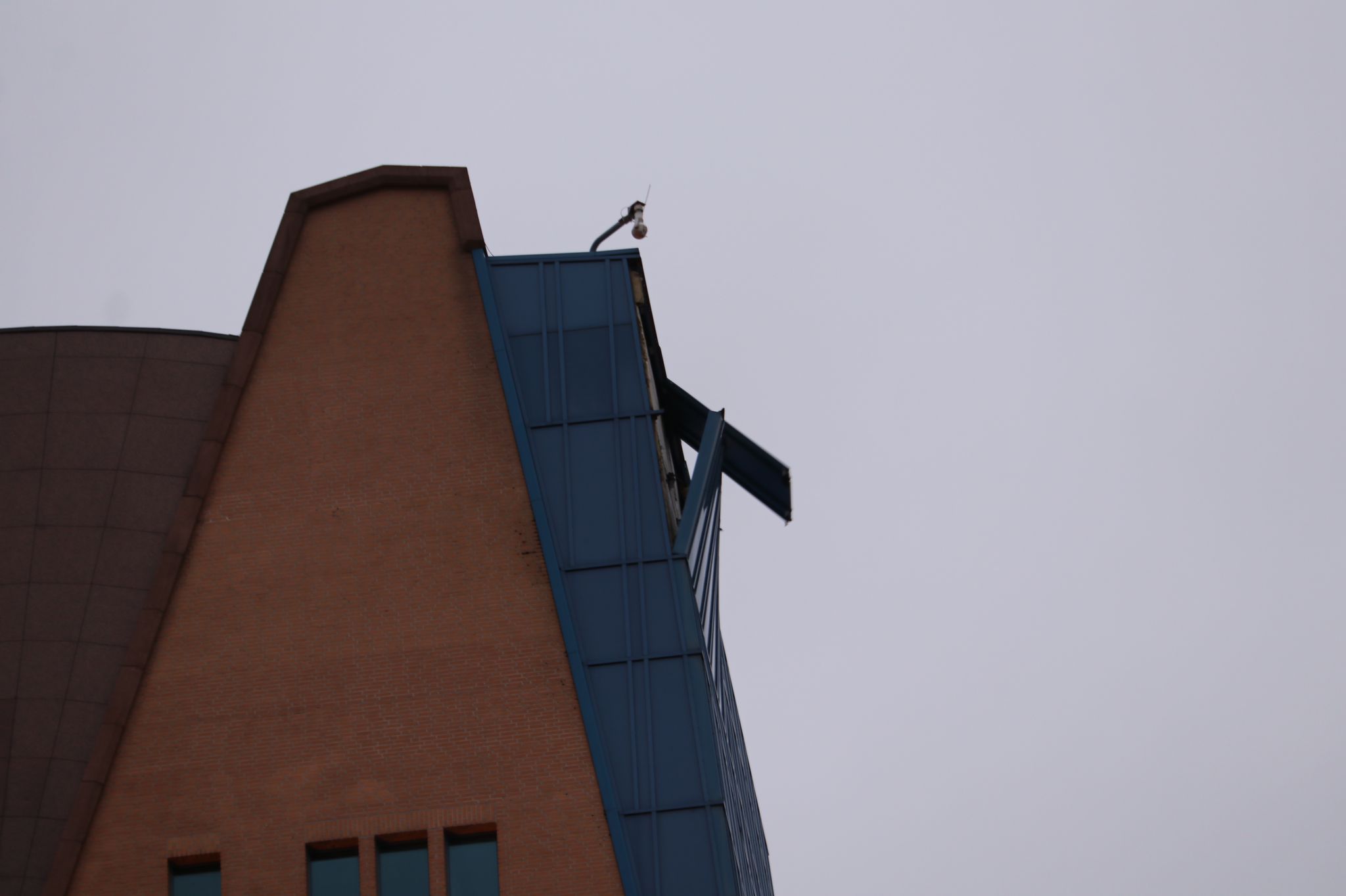 Geveldelen van het Gasunie-gebouw zijn zaterdag als gevolg van de harde wind naar beneden gevallen. Een deel van de ringweg is uit voorzorg afgesloten.
