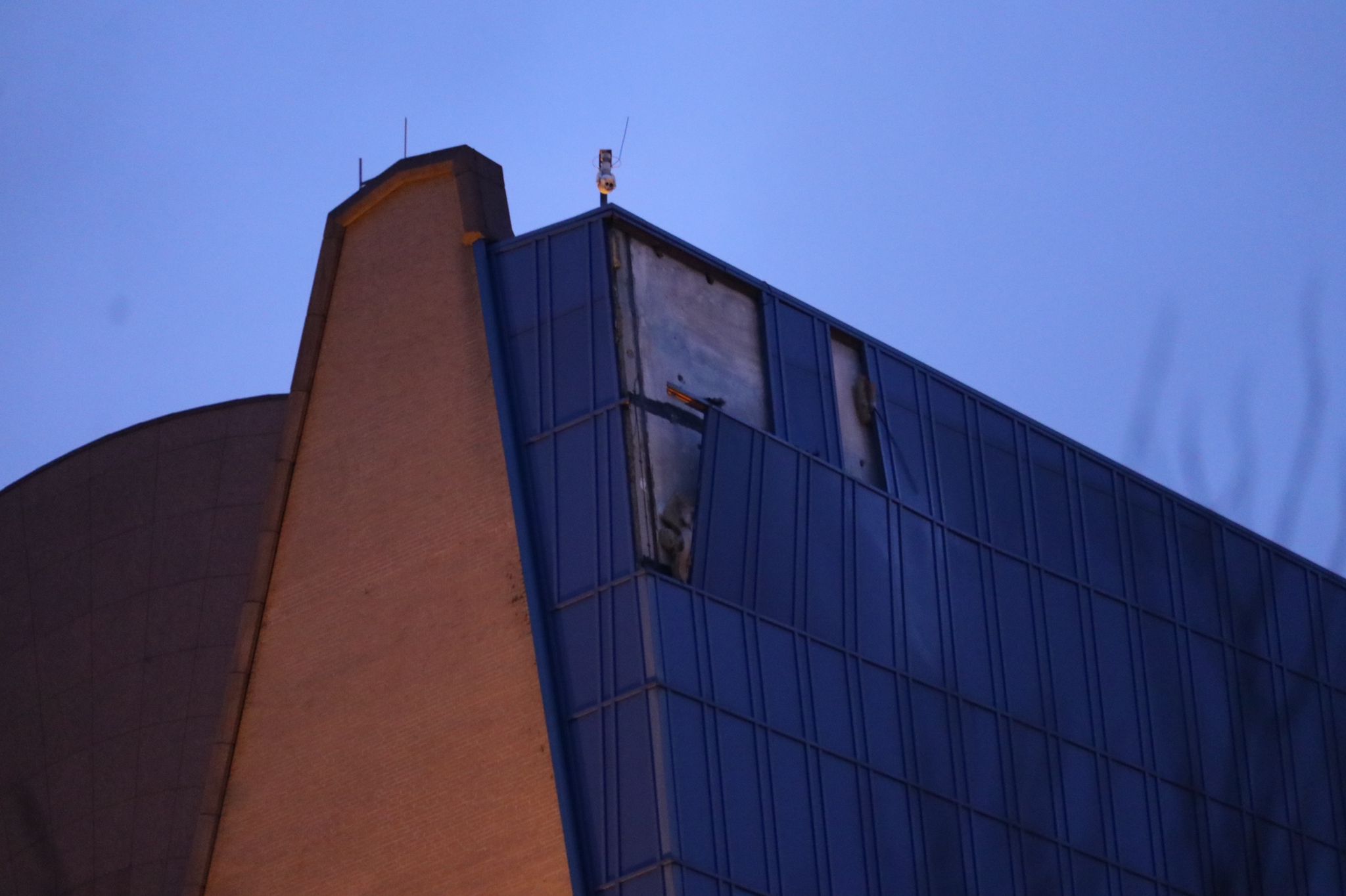 De melding van stormschade kwam rond 17.10 uur binnen bij de hulpdiensten. “Er hangen nog verschillende panelen los”, vertelt nieuwsfotograaf Rick ten Cate van tencatefotografie.nl. “Een aantal delen zijn naar beneden gevallen en ook diverse andere materialen zijn naar beneden gekomen. Op verzoek van de brandweer zijn omliggende wegen afgesloten.” Concreet betekent het dat de zuidelijke ringweg op dit moment in beide richtingen is afgesloten vanaf het Julianaplein in de richting van Drachten. Hetzelfde geldt voor de N370 vanaf Martiniplaza richting Drachten. Groningen Bereikbaar meldt dat de afsluiting voor flinke verkeersdrukte zorgt.