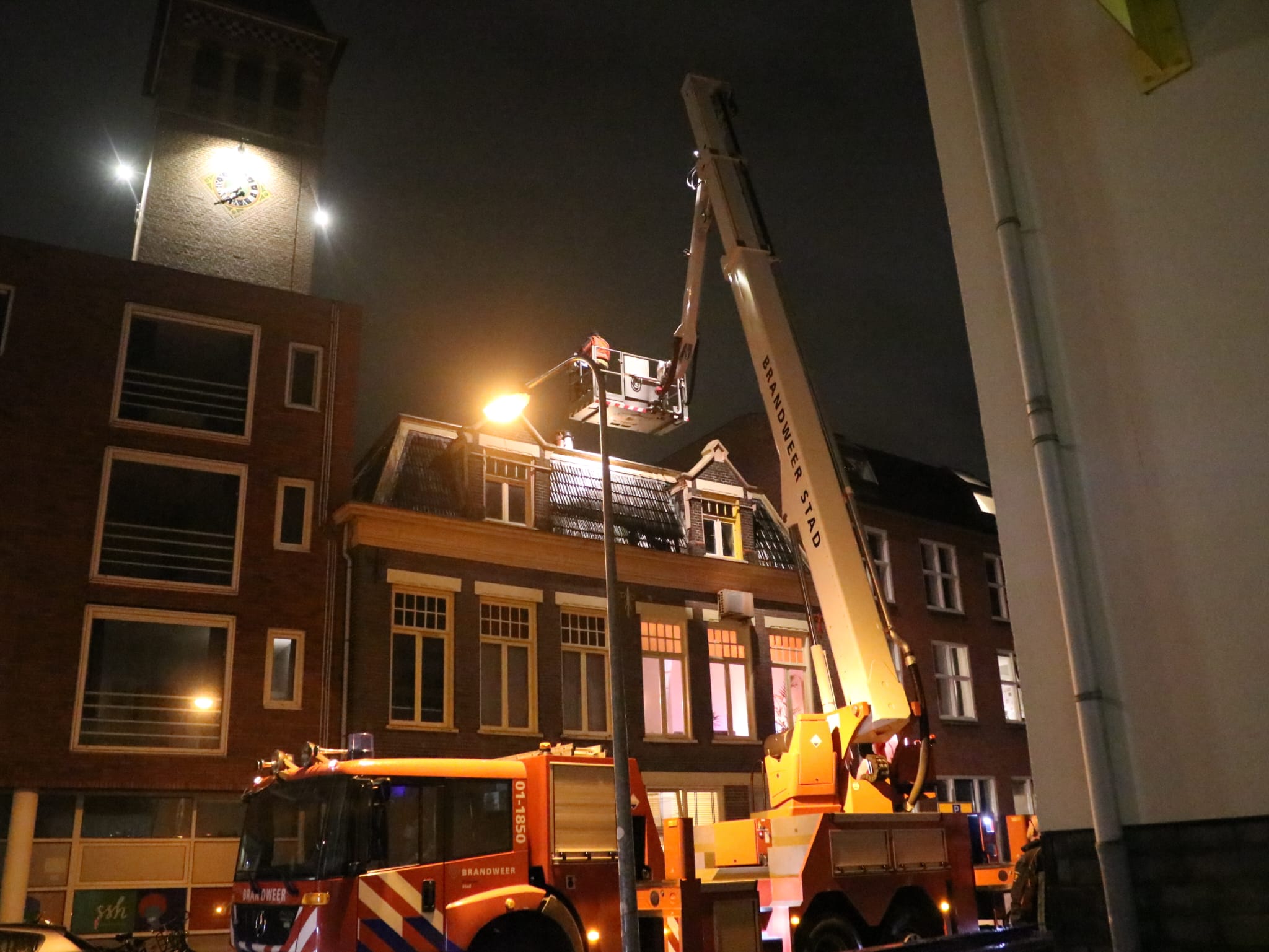 De melding van een stormschade kwam rond 18.15 uur bij de hulpdiensten binnen waarop een hoogwerker ter plaatse werd gestuurd. “Het betreft een stoel die door de harde wind van het ene dak naar het andere dak is gewaaid”, vertelt Wind. “Omdat de stoel naar beneden dreigde te vallen werd de straat afgezet.”