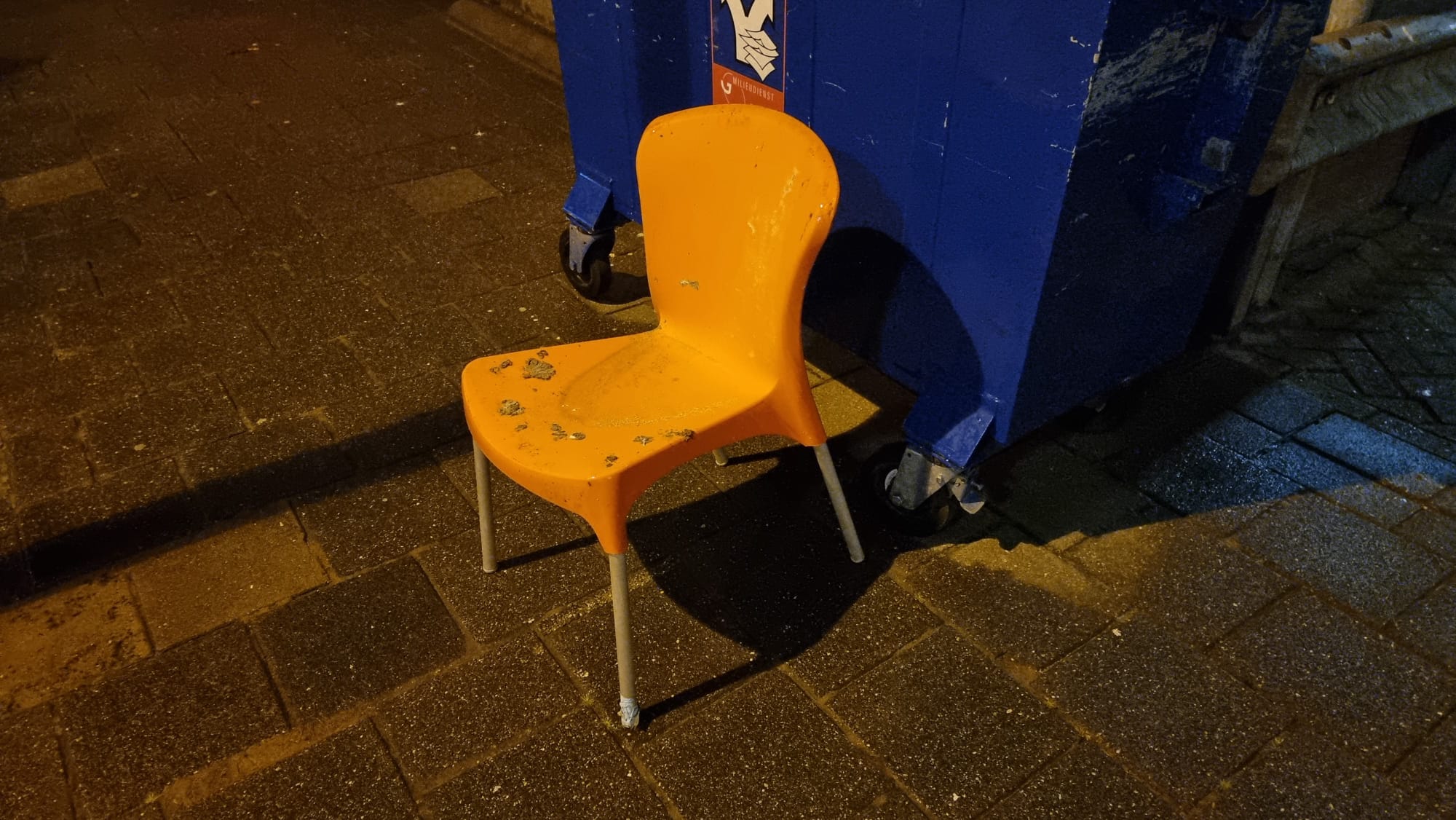 Brandweerlieden hebben de stoel naar beneden gehaald waarna het gevaar geweken was. Even na 18.30 uur kon de straat weer opengesteld worden.