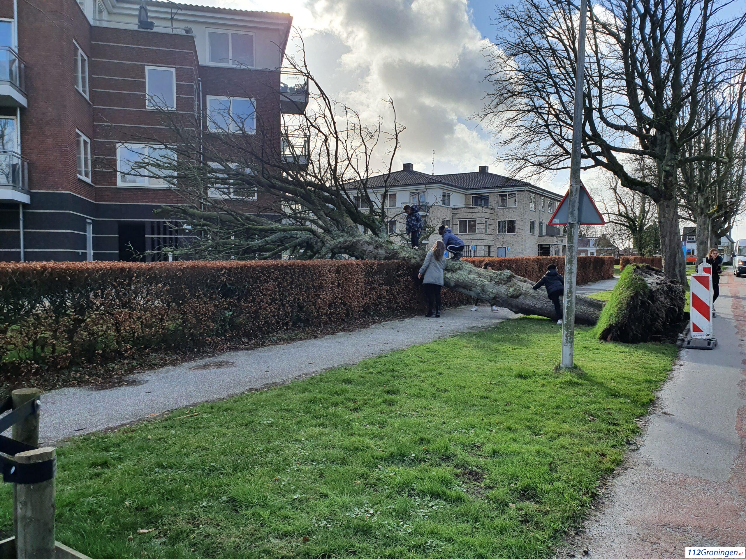 Door de harde wind is een boom omgewaaid aan de Dilgtweg in Haren.