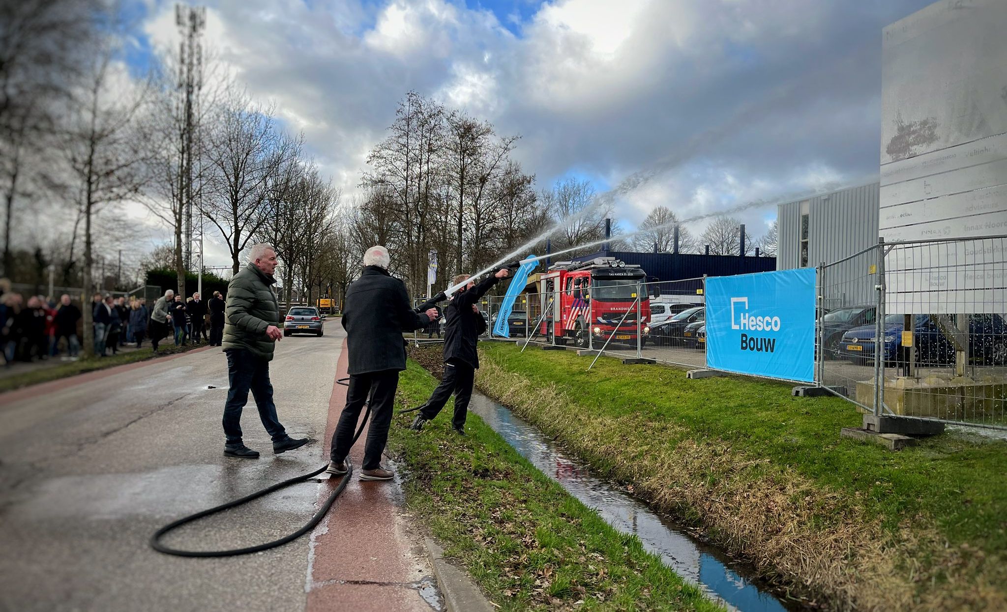 De voertuigen en het personeel moeten eind dit jaar in de nieuwe brandweerkazerne aan het Felland in Haren kunnen verblijven. Met een sterke waterstraal uit een brandweerspuit werd donderdagmiddag het startsein gegeven voor de bouw van de nieuwe kazerne.