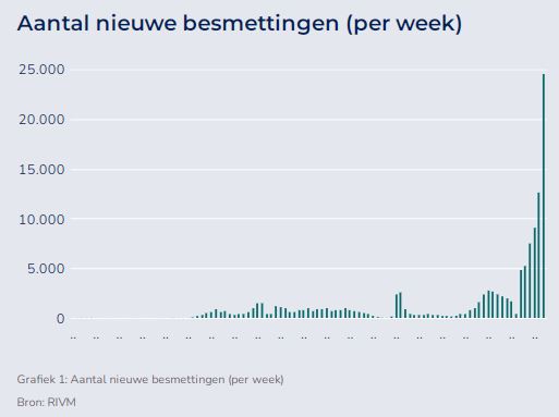 De meeste nieuwe coronabesmettingen werden in de afgelopen week ontdekt in de gemeente Westerkwartier. Daar ging het om 3.934 besmettingen per 100.000 inwoners. In de gemeente Groningen het om 3.638, Stadskanaal 3.426, Het Hogeland 3.266 en Veendam 3.159.
