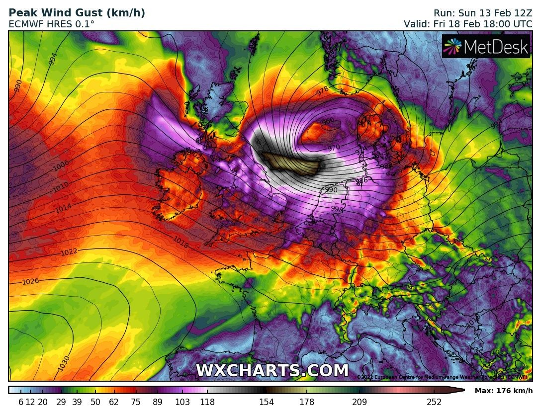 “Een storm is niet bijzonder, en twee stormen in een week zijn dat ook niet direct. Maar wat deze casus interessant maakt is dat we het over twee stormen hebben die op donderdag en vrijdag passeren. Voor de maand februari, midden in de winter, is dat een vrij bijzondere situatie. Je verwacht dit eerder in het najaar.” Kamphuis noemt de voorspellingen pittig. “Wat er vanavond in de weerkaarten zit is best wel indrukwekkend te noemen. Zelfs als de scherpe kantjes er af gaan is het nog pittig. Het is belangrijk om de komende dagen een vinger aan de pols te houden.”