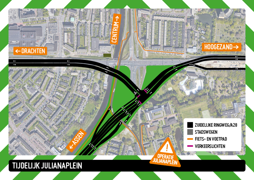 Het Julianaplein wordt tot begin mei flink op de schop genomen en het wordt sterk aangeraden om dan niet met de auto de stad in te gaan, maar om gebruik te maken van het OV. Om deze actie kracht bij te zetten is een win-actie gelanceerd, de #OVerstapweken. Het is bedoeld om de autorijders wegwijs te maken in de wereld van het OV. Via een digitale campagne op tal van plekken, zoals digitale schermen langs de A28 bijvoorbeeld, bij tankstations, radiospotjes, Facebook, Instagram en Flitsmeister wordt dit onder de aandacht gebracht.