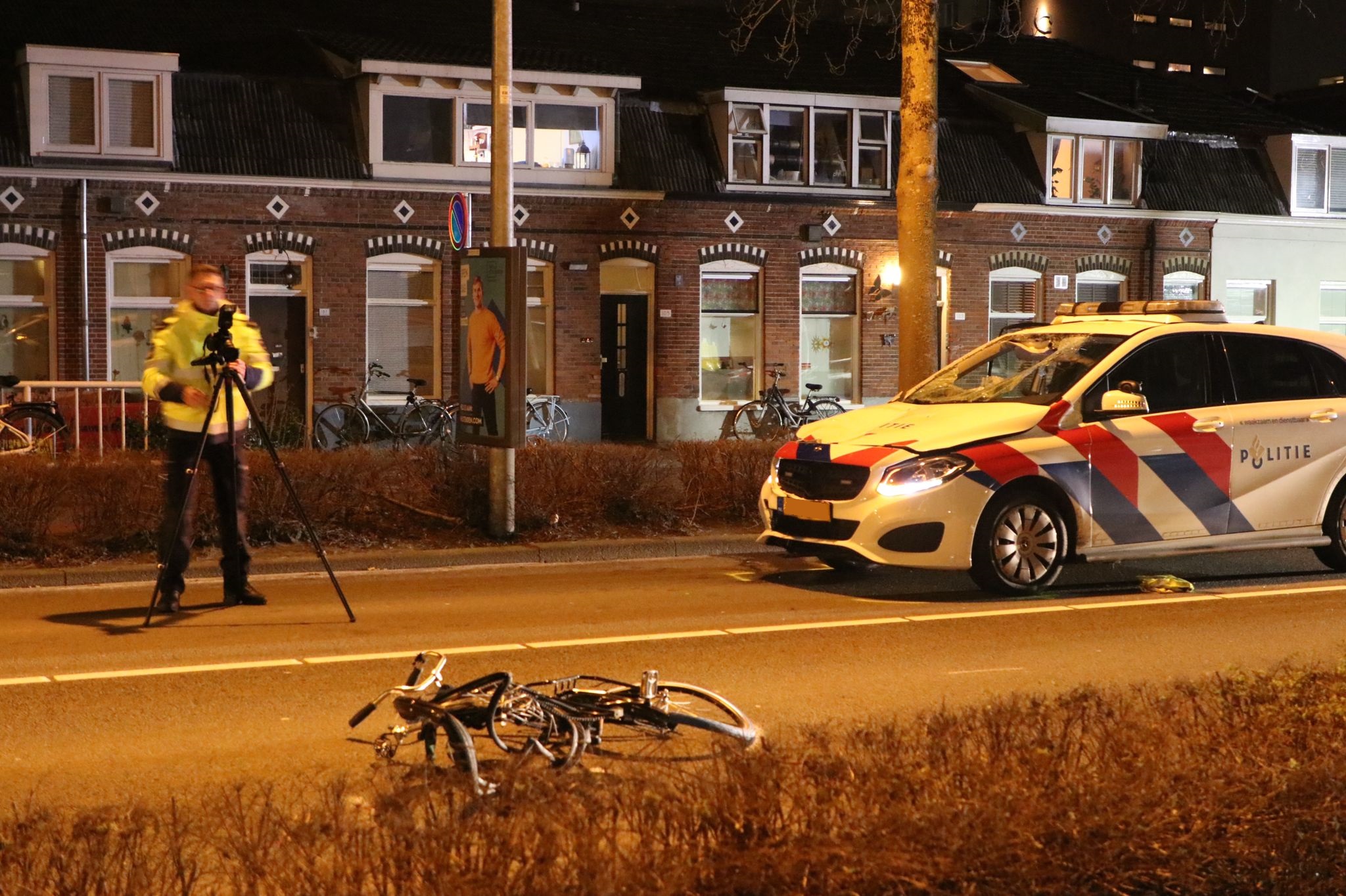 Rond 20.20 uur werd de fietser geschept. “De politiewagen reed in de richting van de westelijke ringweg. Als je ziet waar de politieauto tot stilstand is gekomen, en waar de fiets ligt, dan is dat ongeveer vijftig tot zestig meter na de kruising.” Nieuwsfotograaf Mike Weening benoemt de schade: “De fiets is zwaar beschadigd geraakt, maar dat geldt ook voor de politieauto. De voorzijde en de motorkap zijn flink ingedeukt en de voorruit is helemaal kapot. Met de ervaring die ik als 112-fotograaf heb, kan ik niet anders concluderen dat het een hele harde klap is geweest.”