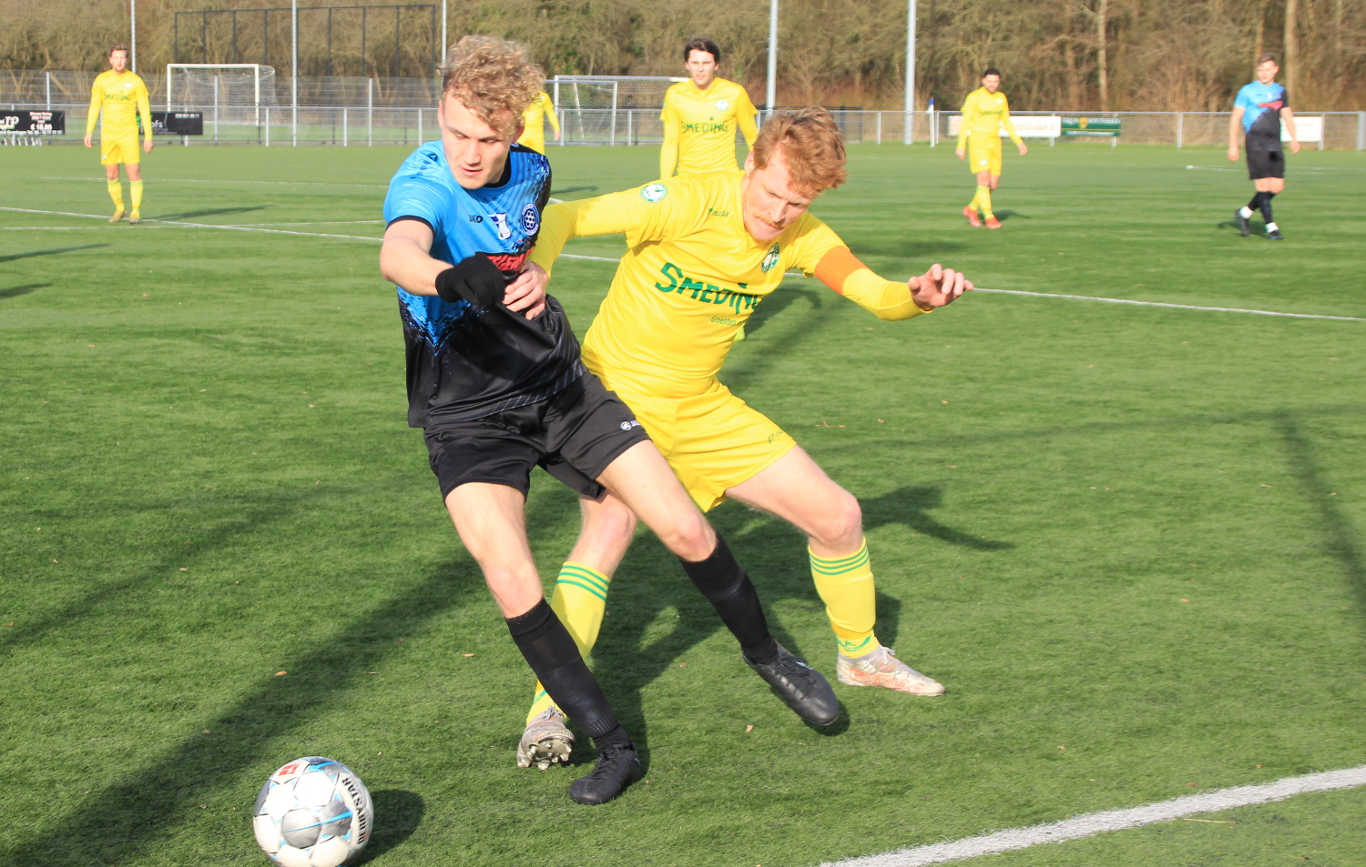 Na 17 minuten was het alweer gelijk toen Cyrus Boerman na een corner van dichtbij het laatste zetje gaf: 1-1. Beide ploegen kregen nog een aardige kans, maar voor de pauze werd niet meer gescoord.