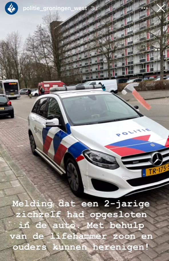 Het kind had zichzelf opgesloten in het voertuig. Omdat de ouders geen enkele mogelijkheid vonden om de auto te openen, werden de hulpdiensten ingeschakeld. Daarop kwam de politie ter plaatse. “Met behulp van een lifehammer hebben we het kind en de ouders kunnen herenigen”, schrijft de politie.