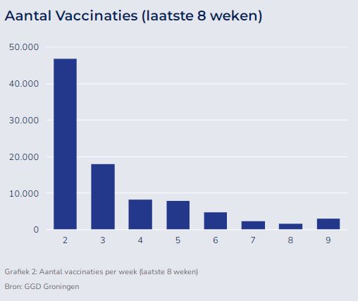 In de afgelopen week zijn er in de provincie 3.150 vaccinaties gezet. Hiervan zijn 1.450 boosterprikken en ruim 1.600 herhaalprikken. Sinds het begin van de vaccinatiecampagne zijn er in de provincie 1.091.507 prikken gezet, waarvan ruim 284.000 boosterprikken. Op alle vaccinatielocaties kun je zonder afspraak terecht voor een boostervaccinatie.