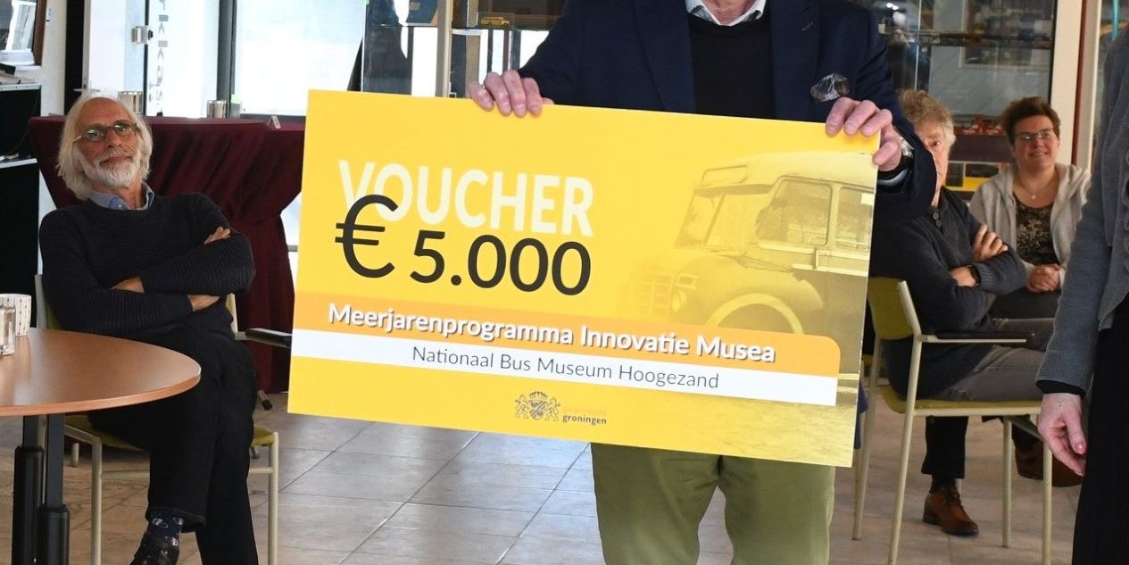Gedeputeerde Mirjam Wulfse reikte donderdag de eerste cheque uit aan de directeur van het Nationaal Busmuseum in Hoogezand. Dit museum heeft nu weinig ruimte om alle bussen te kunnen bewaren en te laten zien. De vijfduizend euro wordt in Hoogezand ingezet om, samen met een expert, te onderzoeken hoe de bussen op de beste manier een plek kunnen krijgen.