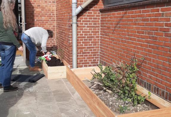 Voor de editie van dit jaar hebben vrijwilligers bloembakken gemaakt. “Normaal maken kinderen bij ons allemaal mooie dingen. Dit keer waren het onze vrijwilligers die bloembakken hebben gemaakt. We hadden twee vrijwilligers van onszelf die actief waren, en twee vrijwilligers die zich via NLDoet hadden ingeschreven om te helpen. Samen hebben we de bloembakken geplaatst, gevuld met potgrond en vervolgens hebben we verschillende bloemen en planten geplant. En het eindresultaat mag er zijn.”