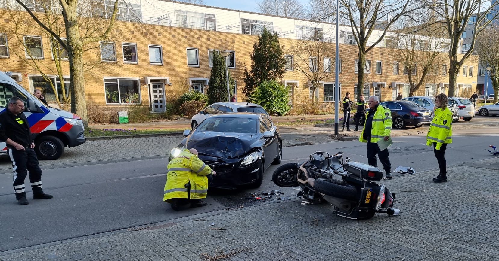 Bij een verkeersongeluk tussen een personenauto en een politiemotor is vrijdagmiddag zeker één persoon gewond geraakt.