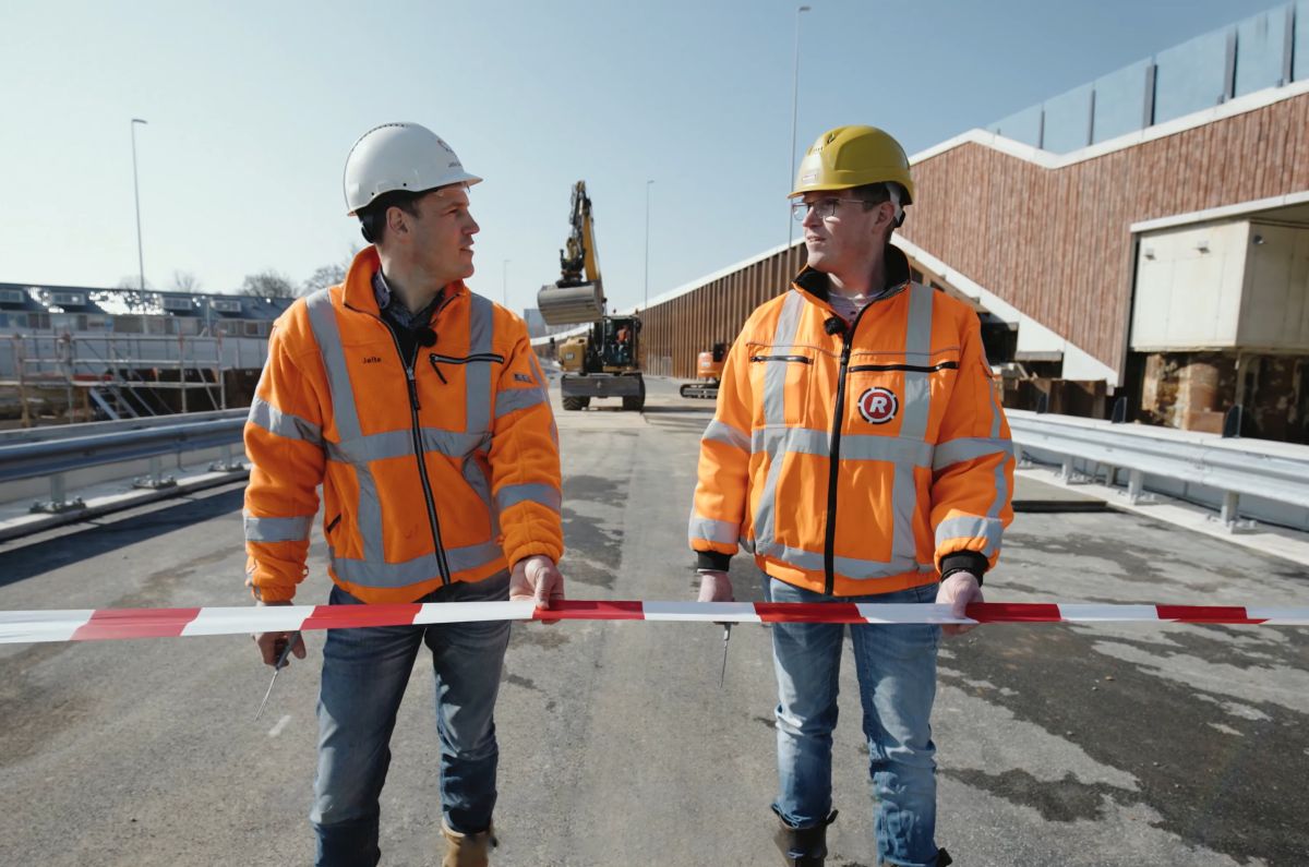 Jelte Seldenrust van Aanpak Ring Zuid en Gerard Huizingh van Combinatie Herepoort knipten het lint donderdagochtend door. De afrit zelf is al een paar maanden in gebruik, maar lag tot nu toe nog niet op de juiste plek. Het verkeer rijdt vanaf donderdag, via het viaduct, over het toekomstige fietspad tussen de Parkbrug en de Vondellaan heen.