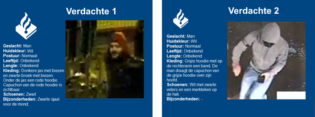 Mensen die één of meerdere verdachten herkennen, kunnen bellen met de gratis tiplijn via 0800-6070. Ook kunnen getuigen dit tipformulier invullen. Mensen die liever anoniem blijven, kunnen bellen met 0800-7000 of met het Team Criminele Inlichtingen (088-6617734).