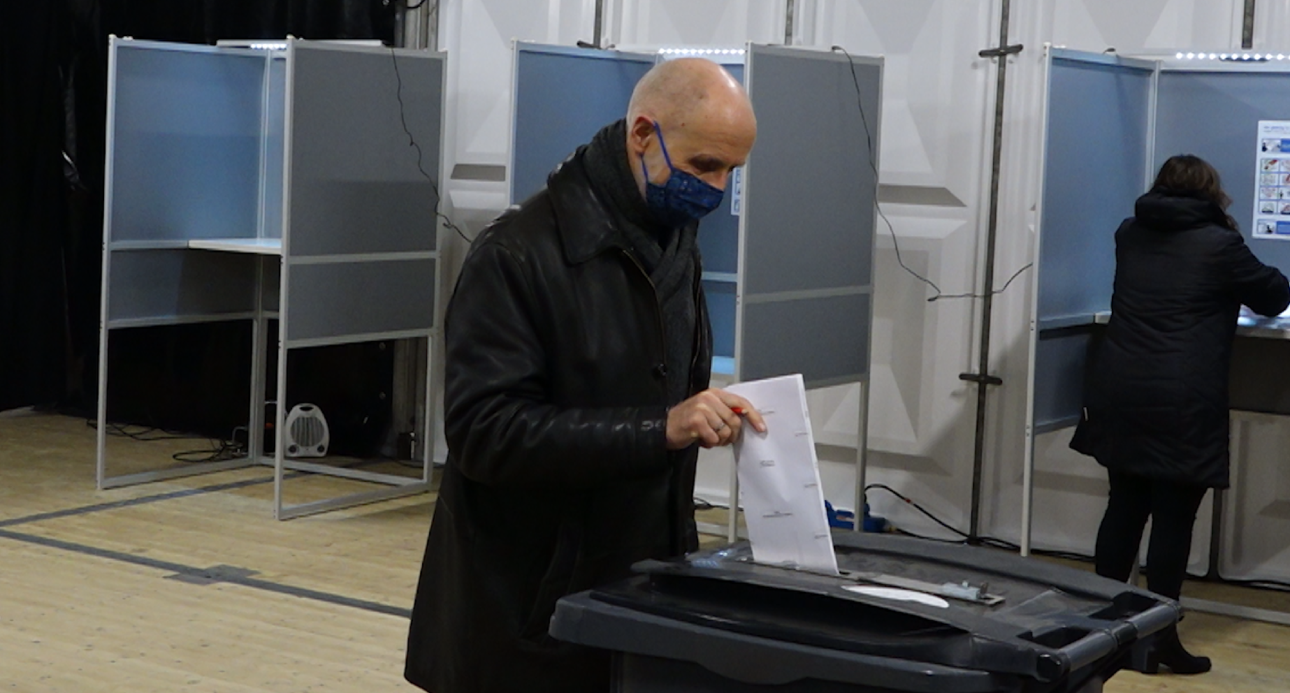 Stemmen op het Damsterplein. Foto: Wouter Hoslappel