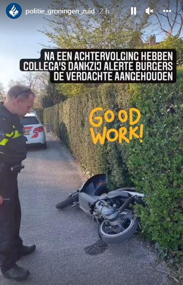 Agenten hebben maandagavond met hulp van buurtbewoners een scooterrijder aan kunnen houden na een achtervolging. Dat meldt de politie op sociale media.