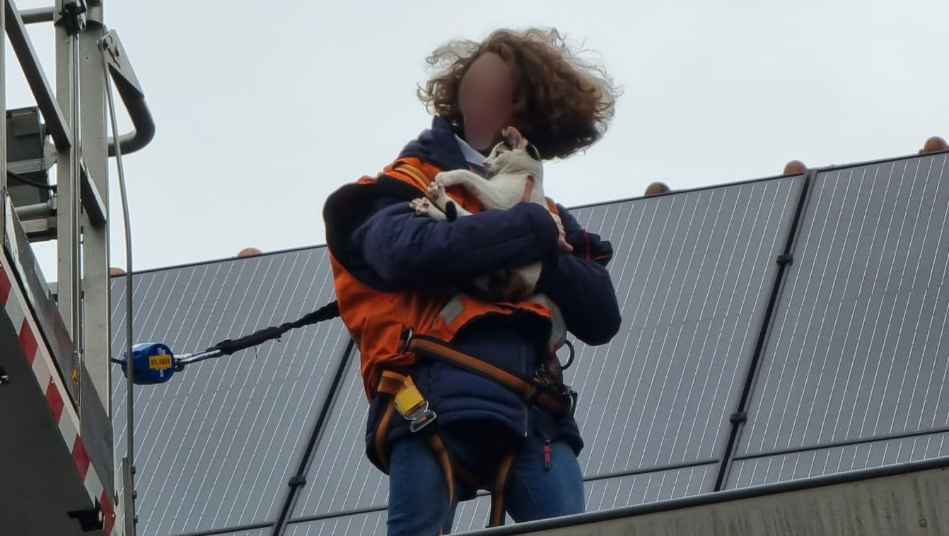 Brandweerlieden hebben maandagochtend de eigenaar van een kat geholpen, door het dier met een hoogwerker te redden van een dak aan de Parkweg.