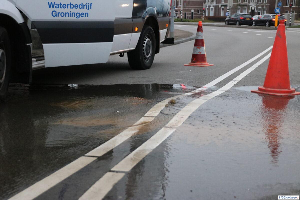 Aan de Petrus Campersingel is vrijdagavond het wegdek beschadigd geraakt als gevolg van een gesprongen waterleiding.