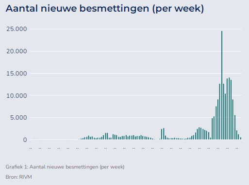 Sinds vorige week woensdag zijn er in de provincie Groningen 445 nieuwe besmettingen bijgekomen. “Het aantal besmettingen is fors gedaald ten opzichte van de week hiervoor toen het nog om 905 nieuwe gevallen ging. De besmettingsgraad ligt in onze regio op 86 gevallen per 100.000 inwoners, dit ligt iets onder het landelijk gemiddelde van 92 per 100.000 inwoners. Het aantal ziekenhuisopnames is afgenomen tot 27,3 per 1.000.000 inwoners, dit was 34,1.” Sinds het begin van coronapandemie is bij 247.235 een coronabesmetting vastgesteld.