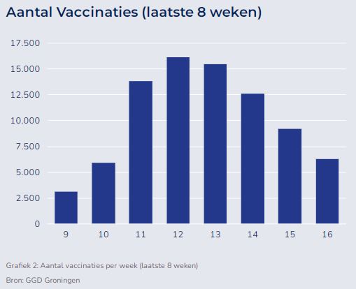 In de afgelopen week zijn er in de provincie Groningen ruim zesduizend coronavaccinaties gezet. Dat meldt de Groningse GGD in haar wekelijkse verslag.