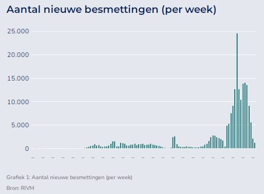 Sinds vorige week woensdag zijn er in de provincie 905 nieuwe besmettingen bijgekomen. “Het aantal besmettingen is fors gedaald ten opzichte van de week hiervoor, toen het om 2.754 besmettingen ging. De besmettingsgraad ligt in onze regio op 154 gevallen per 100.000 inwoners. Dit ligt iets boven het landelijk gemiddelde van 141 per 100.000 inwoners. Het aantal ziekenhuisopnames is fors toegenomen tot 34,1 per 1.000.000 inwoners. Dit was 102,2. Sinds het begin van de coronapandemie is bij 246.790 personen een coronabesmetting vastgesteld.
