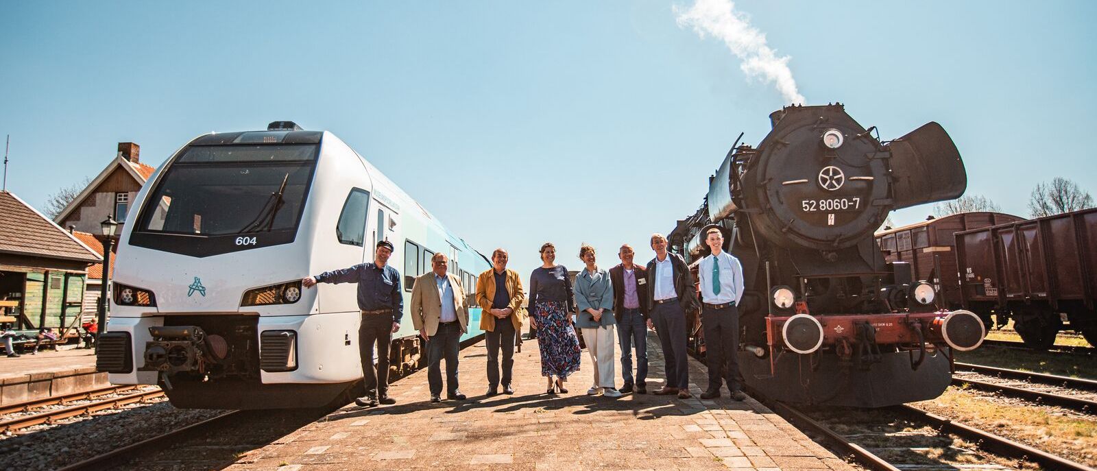 De nieuwe WINK-trein en de historische stoomtrein van Museumspoorlijn STAR stonden vandaag oog-in-oog met elkaar in Stadskanaal, tijdens de onthulling van de nieuwe WINK-trein van vervoerder Arriva. De trein draagt de naam ‘Museumspoorlijn STAR’.