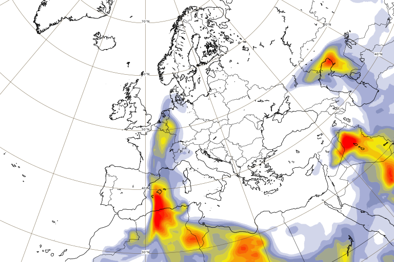 “Enkele weken geleden was er door het Saharazand flink wat overlast door smerige auto’s en vieze ramen. Dat zal dit keer niet gebeuren”, vertelt Kamphuis. “Wat we zien is dat een depressie ten westen van Frankrijk, die doorloopt tot aan het noorden van Afrika, en een krachtig hogedrukgebied boven het midden van Europa die reikt tot over het zuidwestelijk deel van de Middellandse Zee, verantwoordelijk zijn voor een diepe zuidelijke circulatie. Daarmee wordt het zand aangevoerd.”