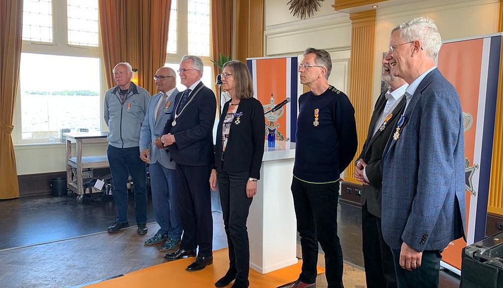 Burgemeester Schuiling reikte dinsdagochtend negentien Koninklijke onderscheidingen uit ter gelegenheid van de jaarlijkse Lintjesregen in De BuitenSociëteit in Haren.