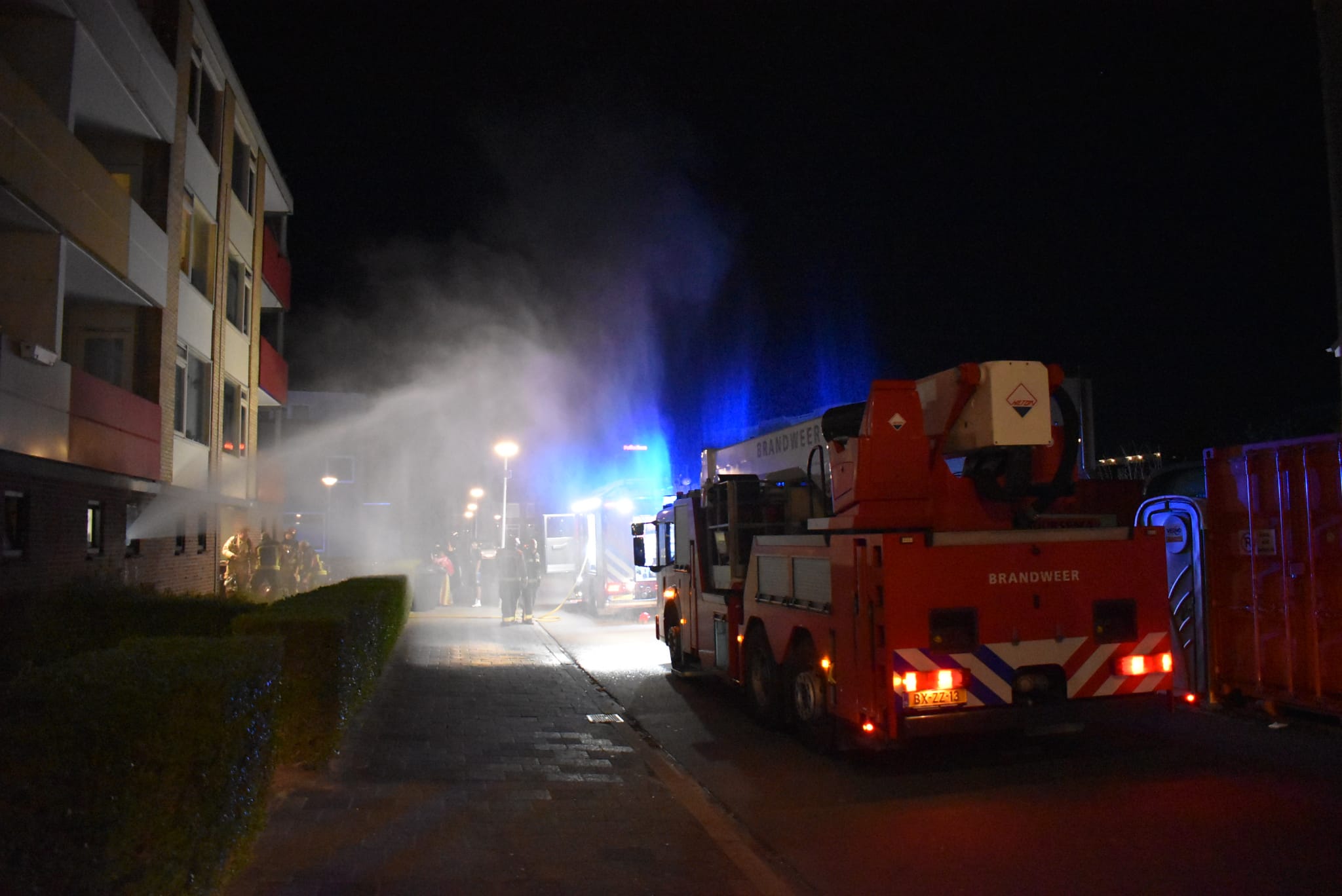 De melding van de brand kwam rond middernacht binnen waarop een tankautospuit en een hoogwerker ter plaatse werden gestuurd. “Toen de brandweer arriveerde kwam er flinke rookontwikkeling uit de kelderbox”, vertelt nieuwsfotograaf Mike Weening van Weening Fotografie. “Brandweerlieden zijn met ademluchtbescherming de kelderbox ingegaan en hebben daar een blussing uitgevoerd. Verschillende materialen die in de box lagen opgeslagen werden naar buiten gebracht.”