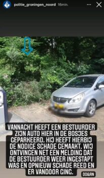 “De bestuurder heeft in de nacht van zaterdag op zondag zijn voertuig in de bosjes geparkeerd”, schrijft de politie. “Daarbij is de nodige schade gemaakt. In de ochtend ontvingen wij een melding dat de bestuurder weer is ingestapt en opnieuw schade heeft gereden met het plan om er vervolgens vandoor te gaan.” Dit kon door de politiemensen belet worden. “Wij hebben een bergingsbedrijf gevraagd om het voertuig af te slepen, om daarmee te voorkomen dat de bestuurder nogmaals gaat rijden.”