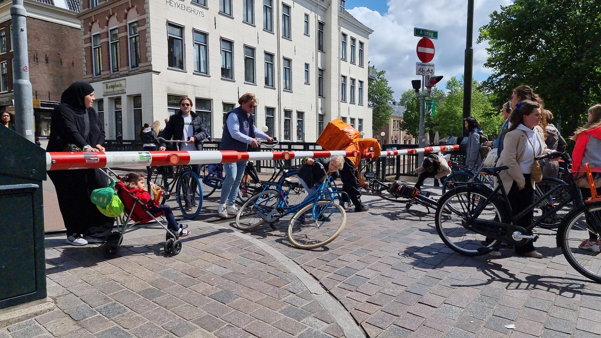 “Het is een chaos”, vertelt Jorien Bakker lachend. “Ik fietste er rond 13.30 uur langs om even naar de markt te gaan om wat boodschappen te halen. Ik ben maar omgefietst. Op de terugweg dacht ik, het zal nu wel klaar zijn. Maar niet dus. De brug ligt in een vrijwel gesloten toestand, maar de slagbomen willen niet omhoog. Voetgangers en fietsers laten zich echter niet tegen houden en kruipen onder de slagbomen door. Alsof ze de Limbo dansen, haha.”