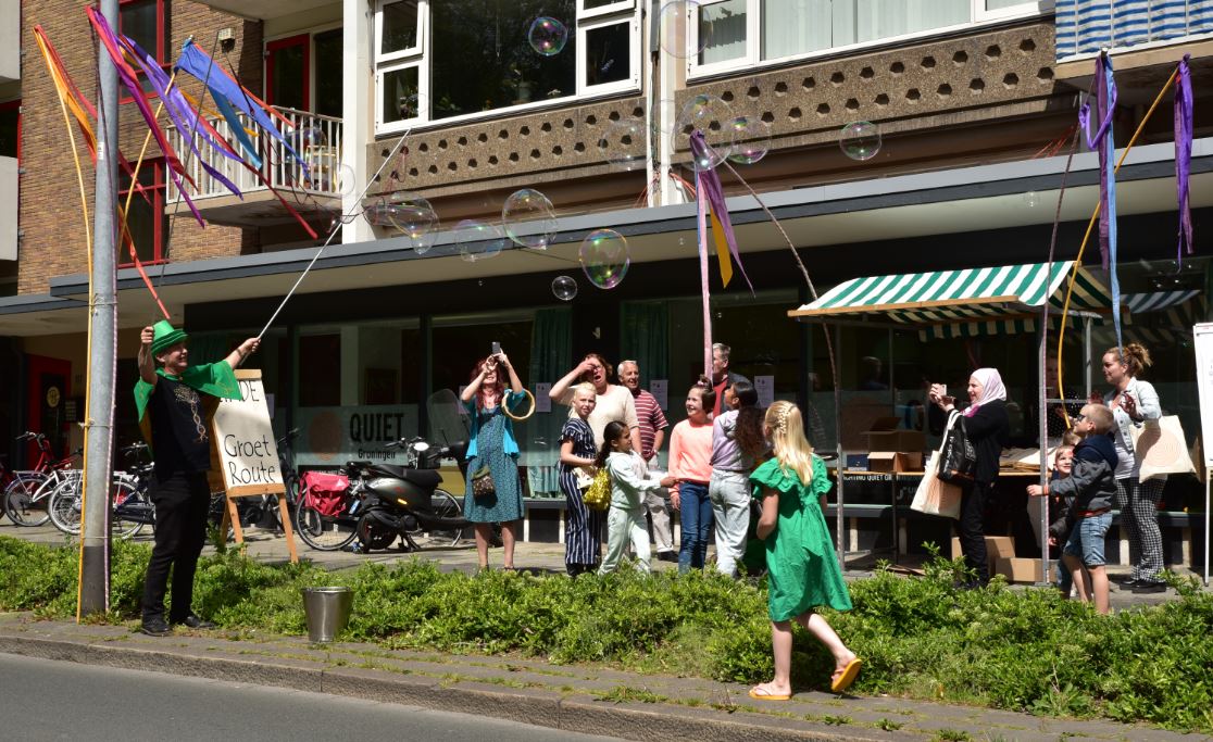 “De omstandigheden konden niet beter”, vertelt Maria Blom van de Kledingbank. “Het was mooi weer, en het programma viel in de smaak. We werkten samen met onze buren van stichting QUIET Groningen. Er waren kraampjes met kleding, er was schmink, stoepkrijt en bellenblazen voor de kinderen, er was een modeshow met kleding van Maxima en een loterij met mooie prijzen. Hoeveel mensen we hebben mogen ontvangen? Veel. Mensen uit de buurt, maar ook klanten en potentiële nieuwe klanten.”