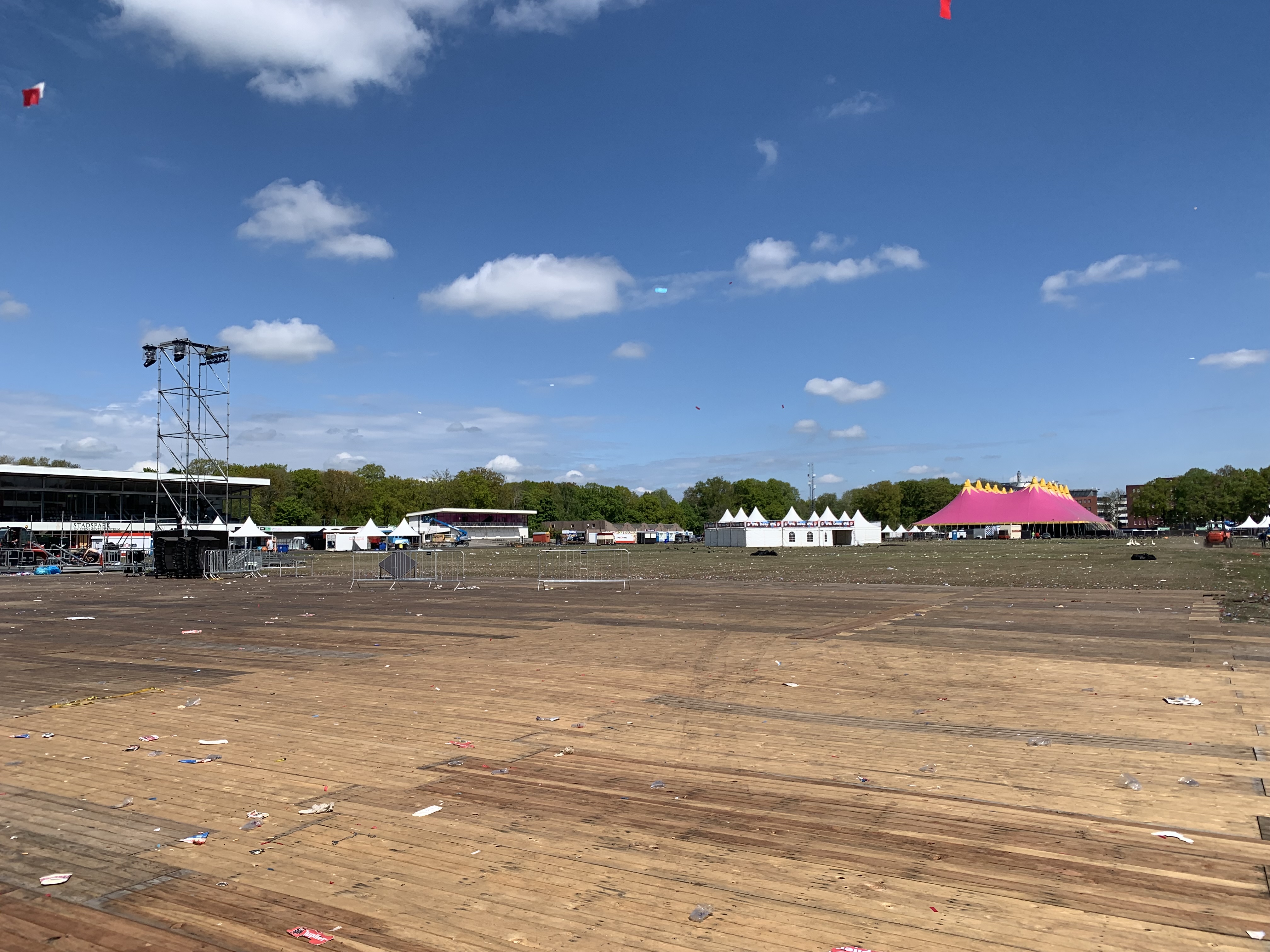 “Vandaag moeten alle techniek, tenten en alle materialen weer weg, zodat we hopelijk morgen aan het einde van de dag weer een leeg grasveld hebben”, vertelt projectleider Gerben. Ook zijn er vele vrijwilligers aan de slag om het festivalterrein weer schoon te maken: “Ik was om 03:00 uur vannacht hier weggegaan en ben om 09:00 uur vanochtend weer gestart. Het is dus even flink aanpoten, maar de zon schijnt en daar krijg ik veel energie van”, aldus vrijwilliger Alex.